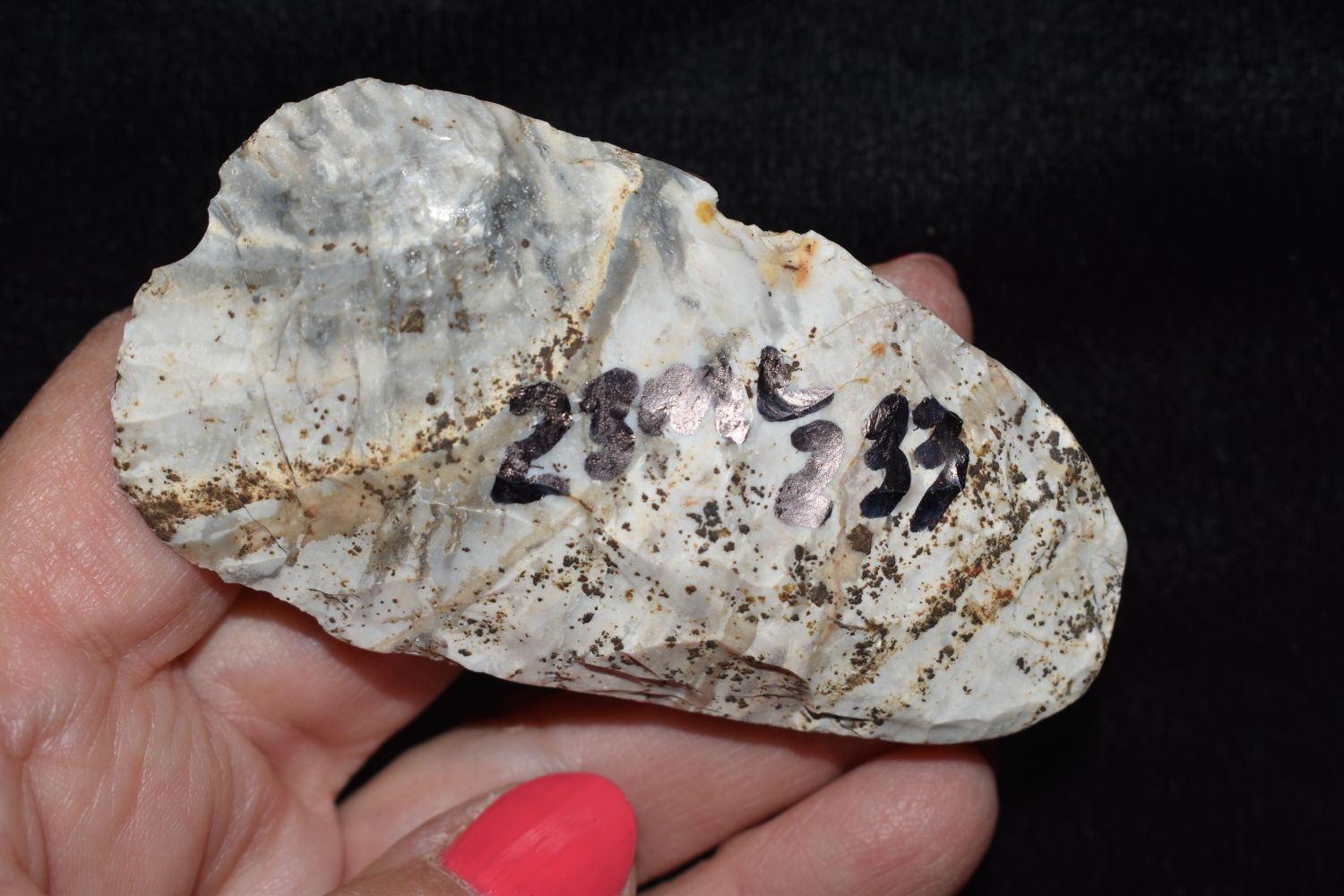 3 1/4″ Archaic Blade found in Miller County Missouri on the Miller Site (23ML233) by Alan D. Miller. Authentic Native American Arrowhead