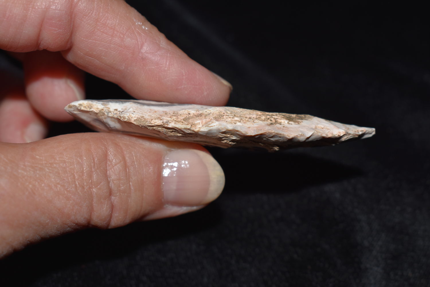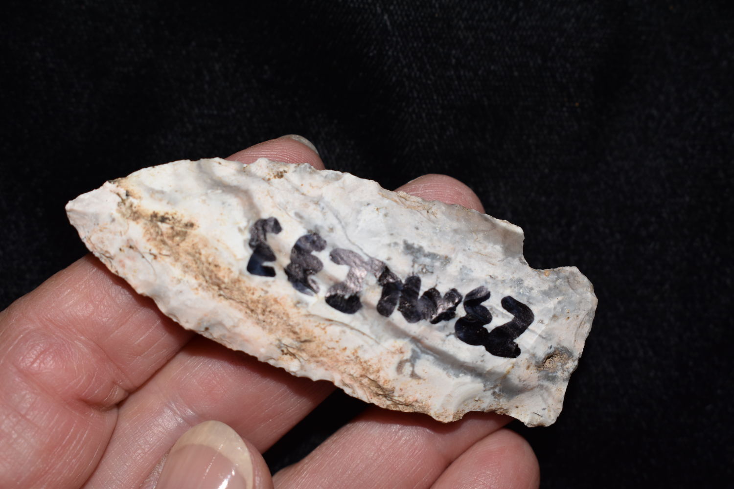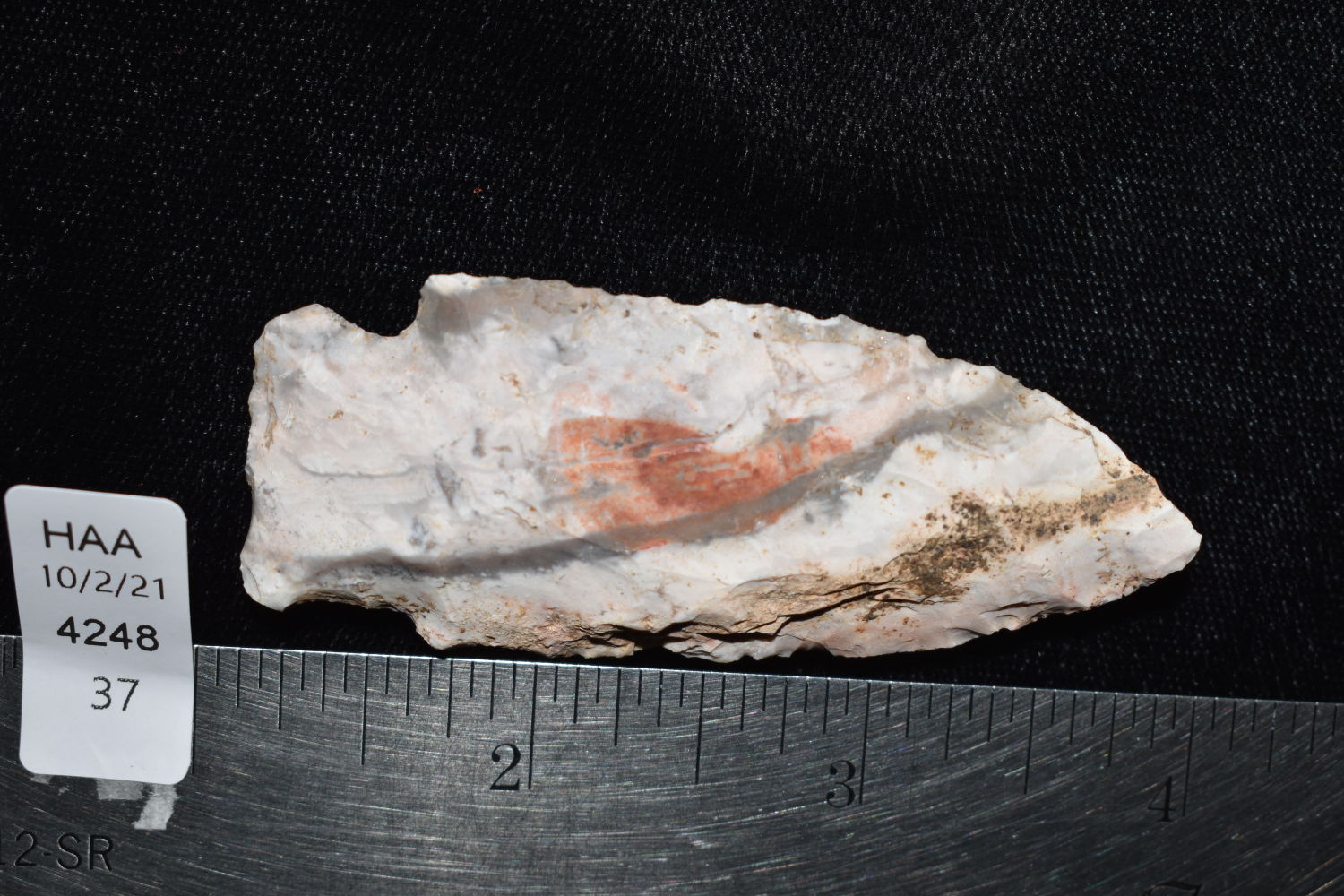 2 7/8″ Etley, found in Miller County Missouri on the Miller Site (23ML233) by Alan D. Miller. Authentic Native American Arrowhead
