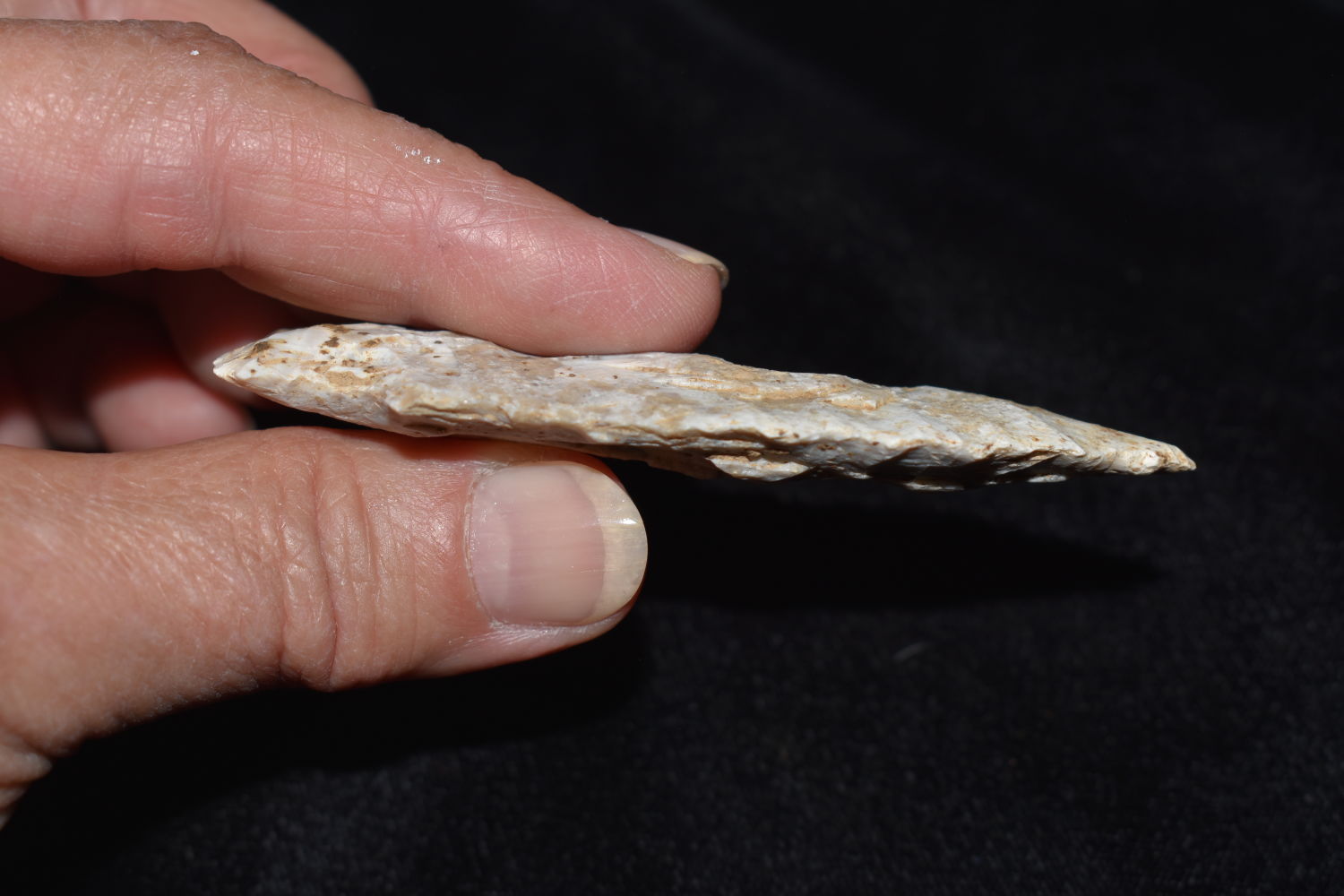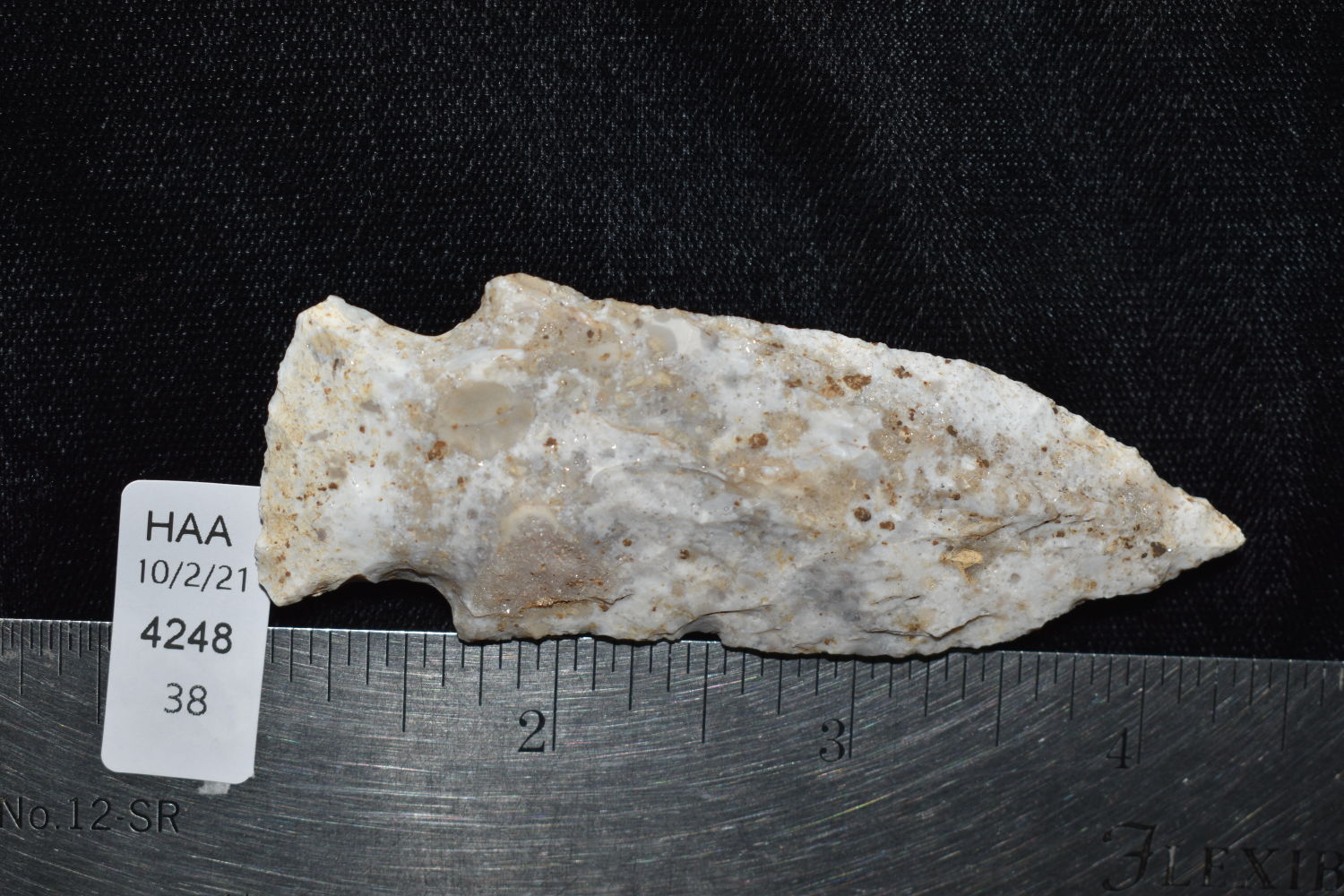 3 1/4″ Etley, found in Miller County Missouri on the Miller Site (23ML233) by Alan D. Miller. Authentic Native American Arrowhead