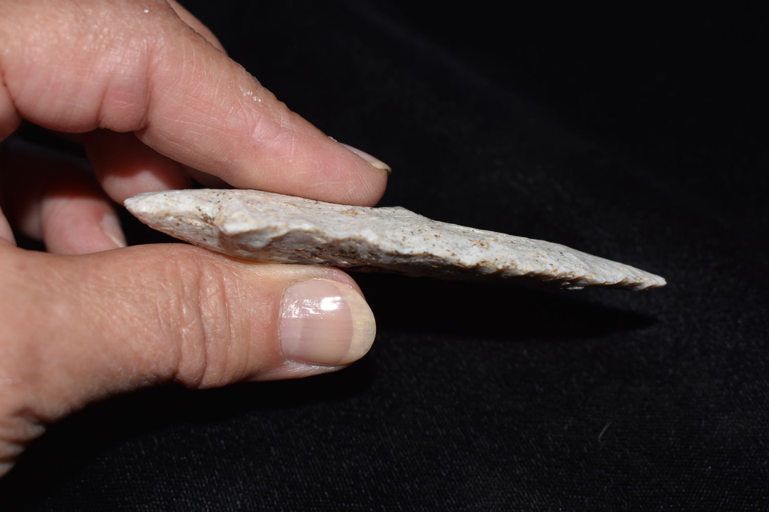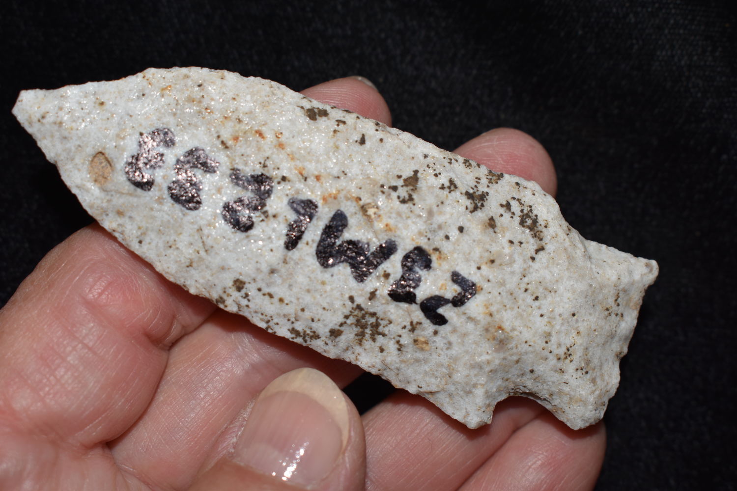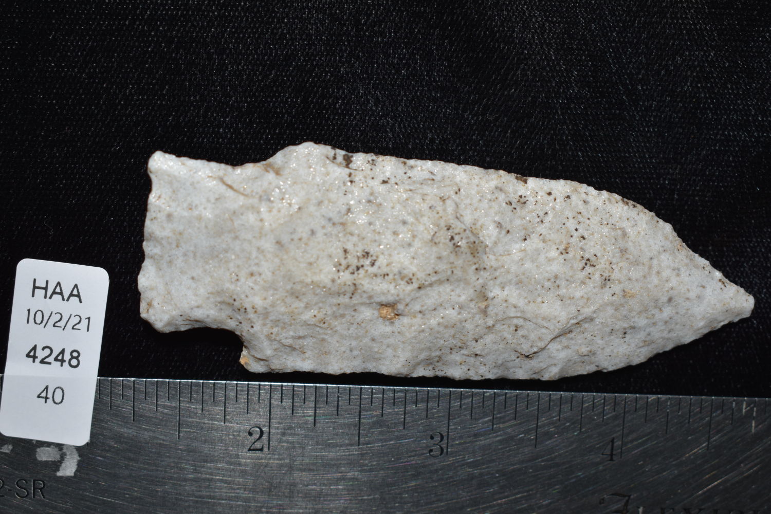 3 3/8″ Etley, found in Miller County Missouri on the Miller Site (23ML233) by Alan D. Miller. Authentic Native American Arrowhead