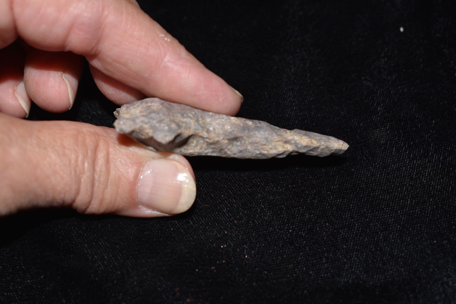 2 1/2″ Paddle Drill, found in Miller County Missouri on the Miller Site (23ML233) by Alan D. Miller. Authentic Native American Arrowhead