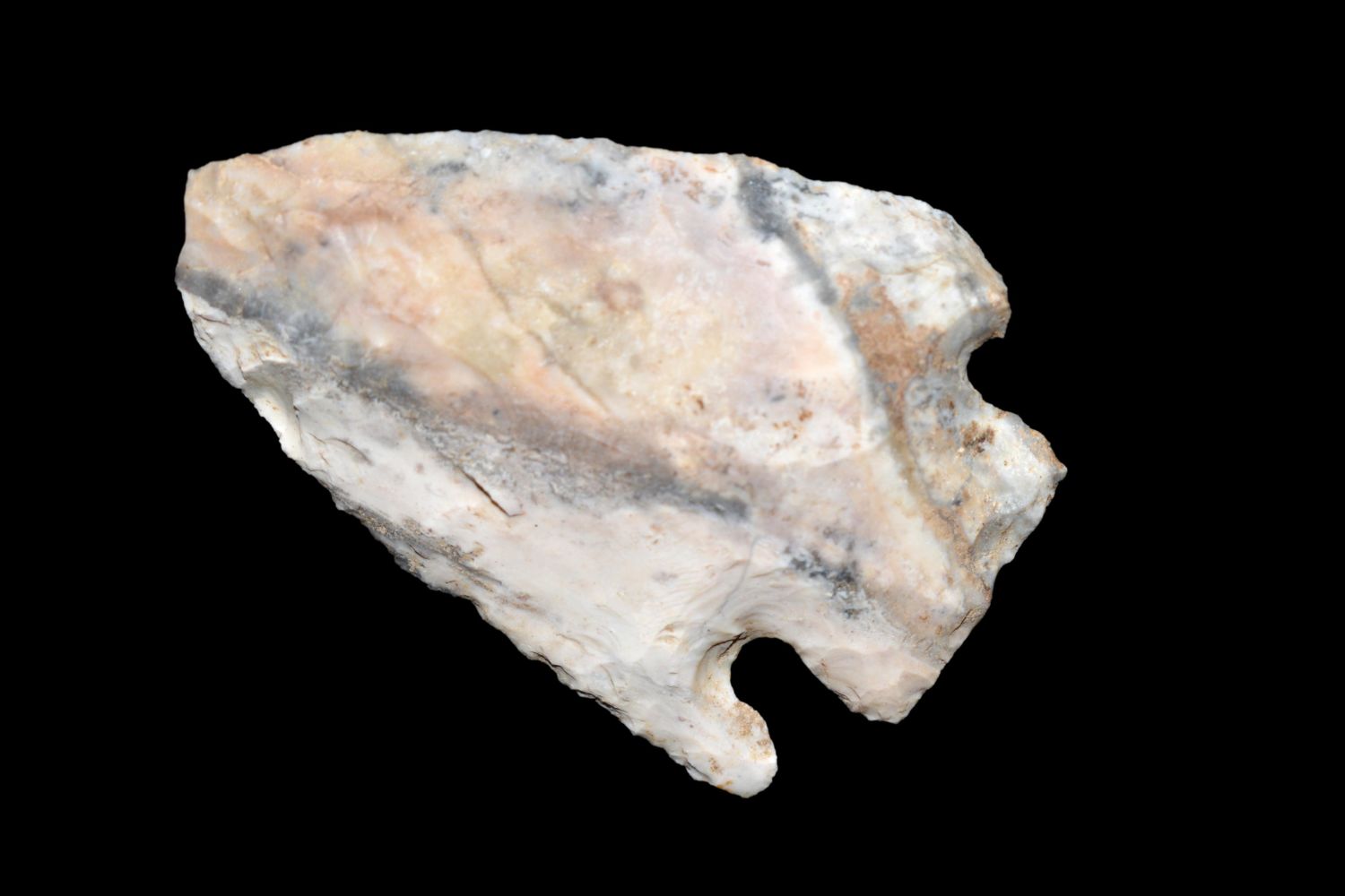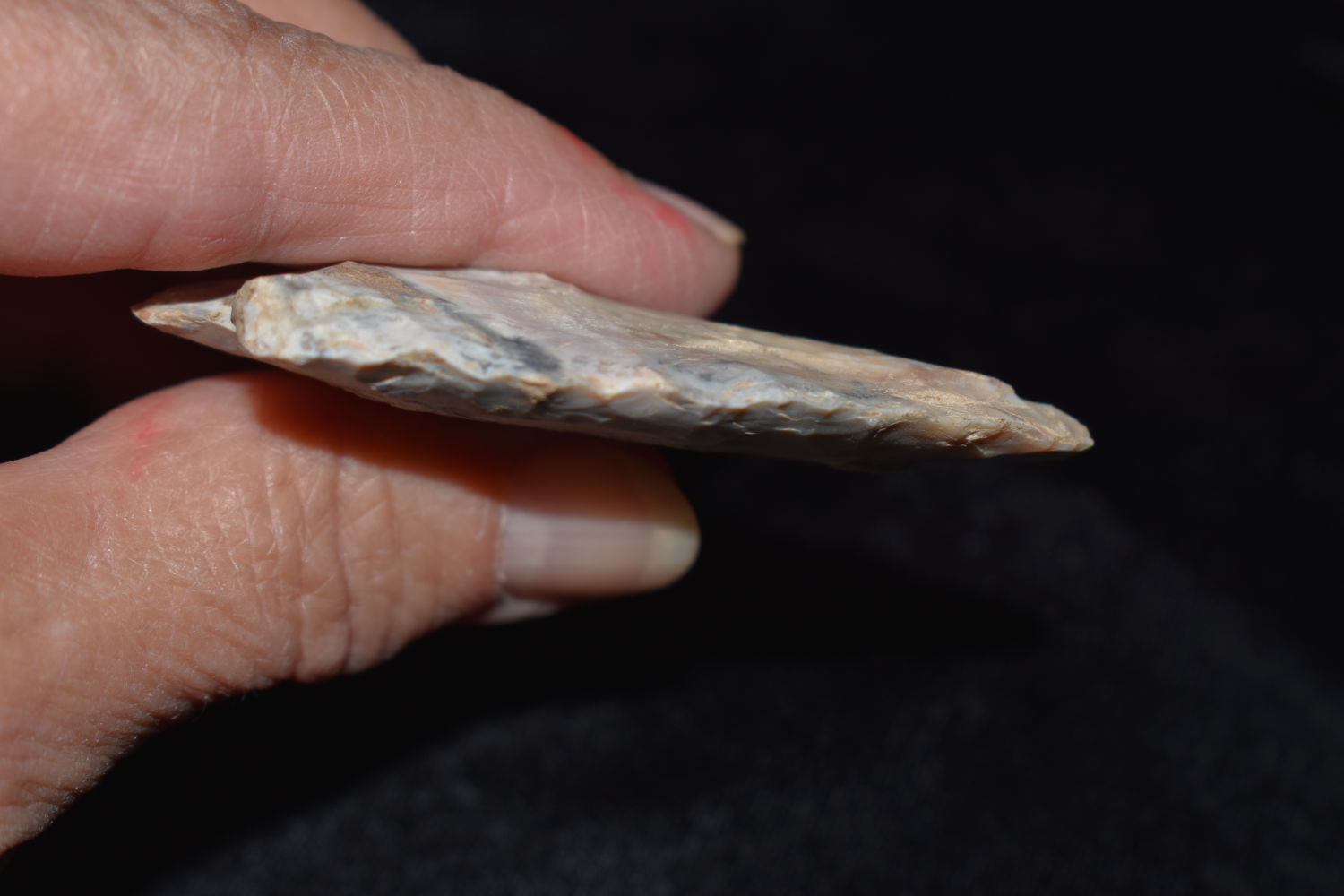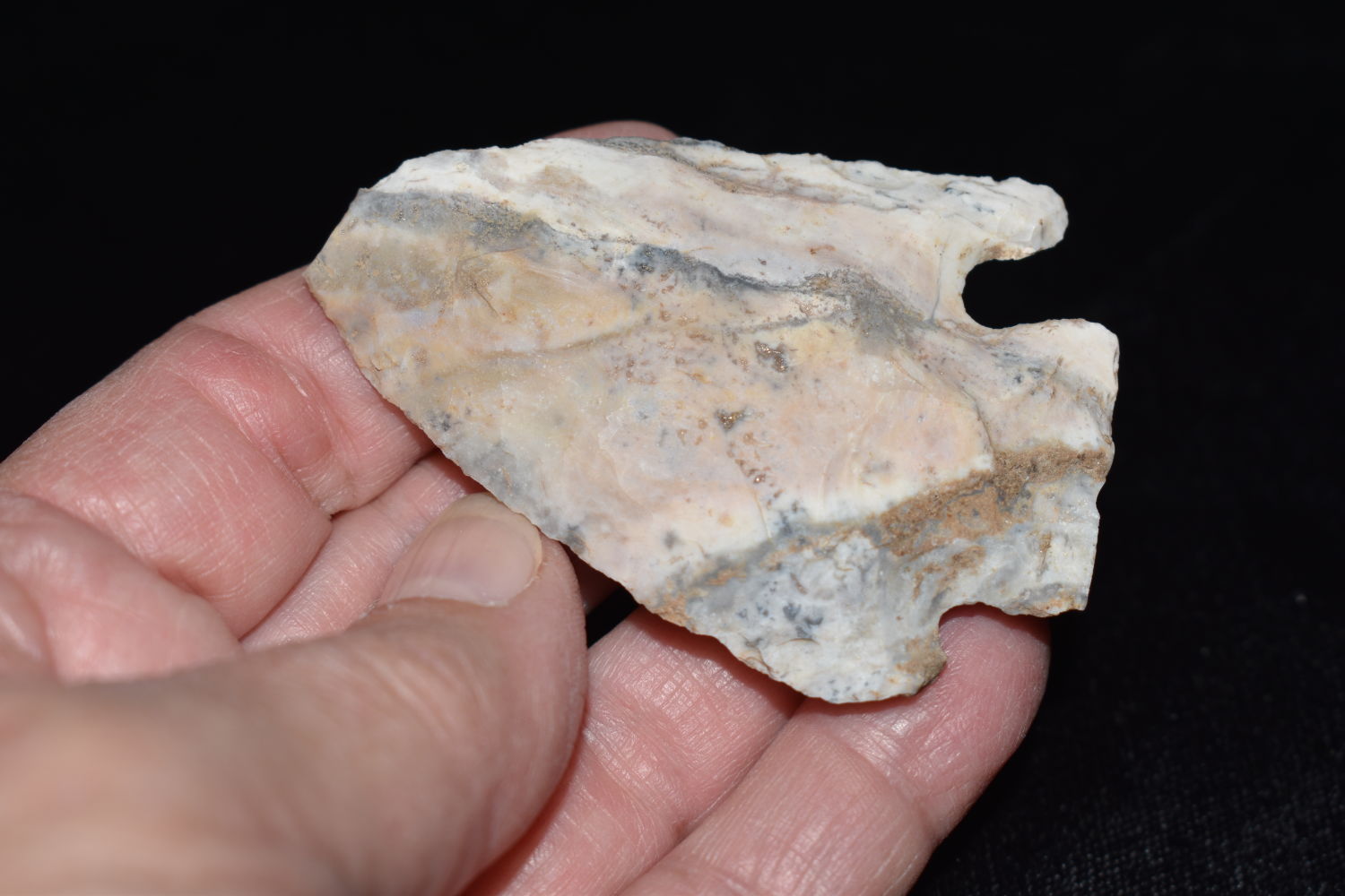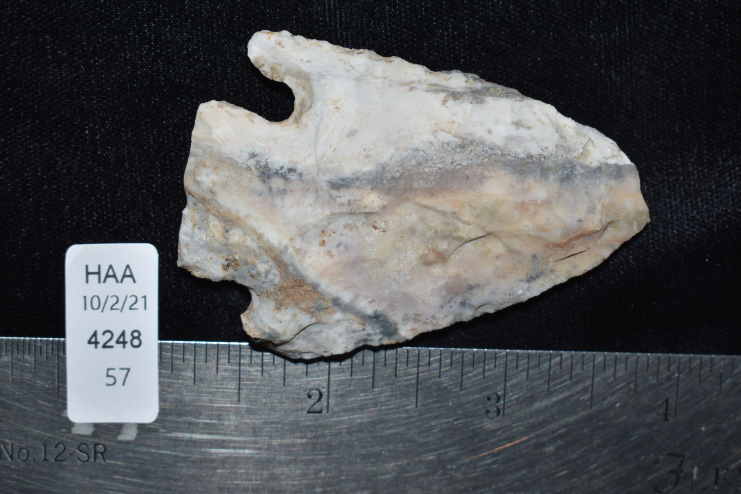 2 5/8″ Mozarkite Mehlville, found in Miller County Missouri on the Miller Site (23ML233) by Alan D. Miller. Authentic Native American Arrowhead