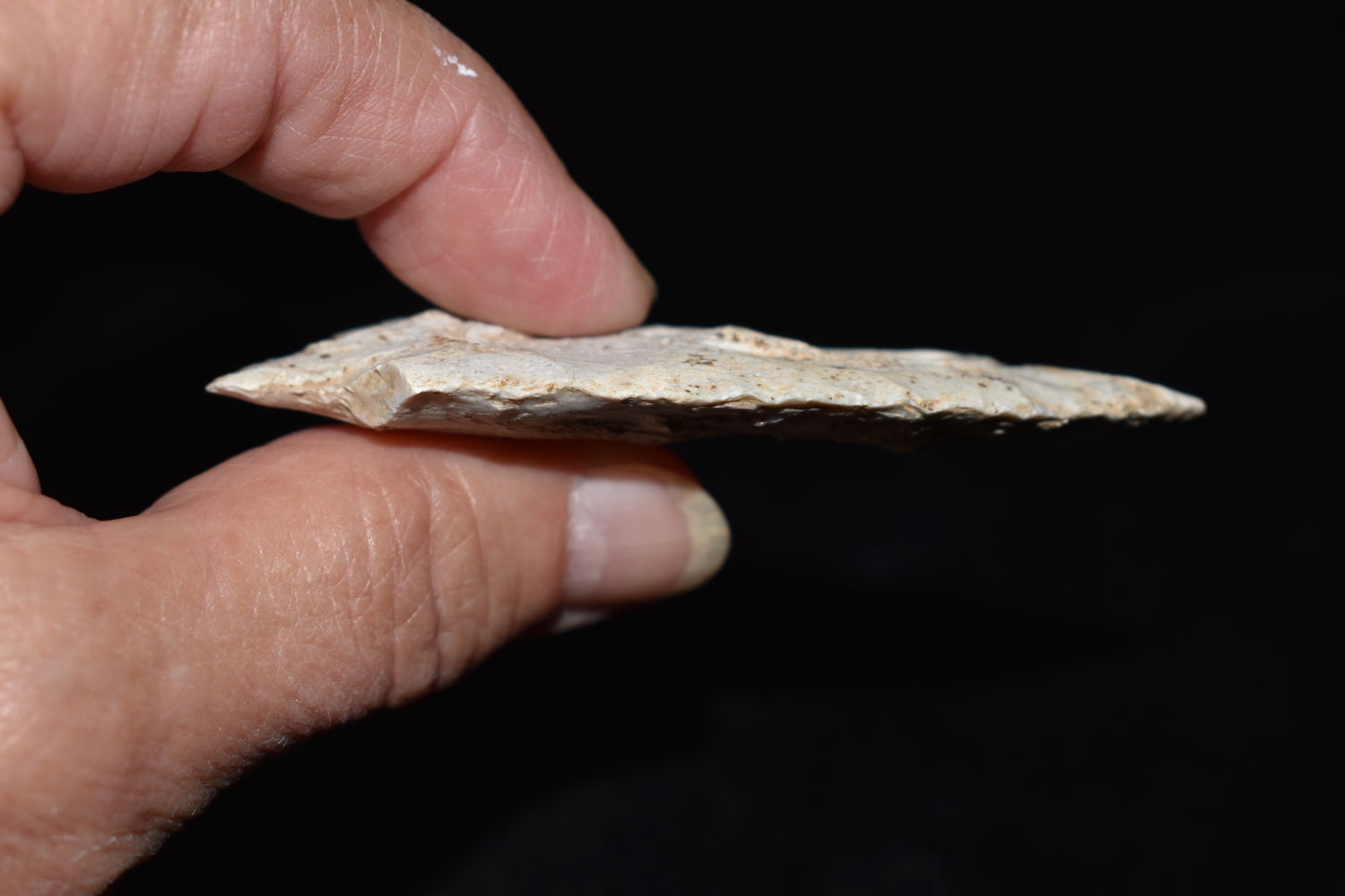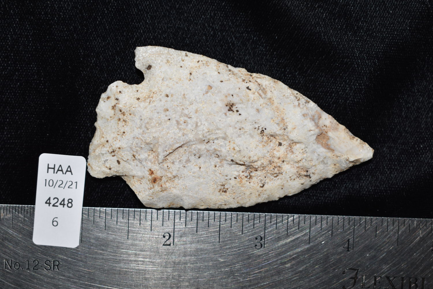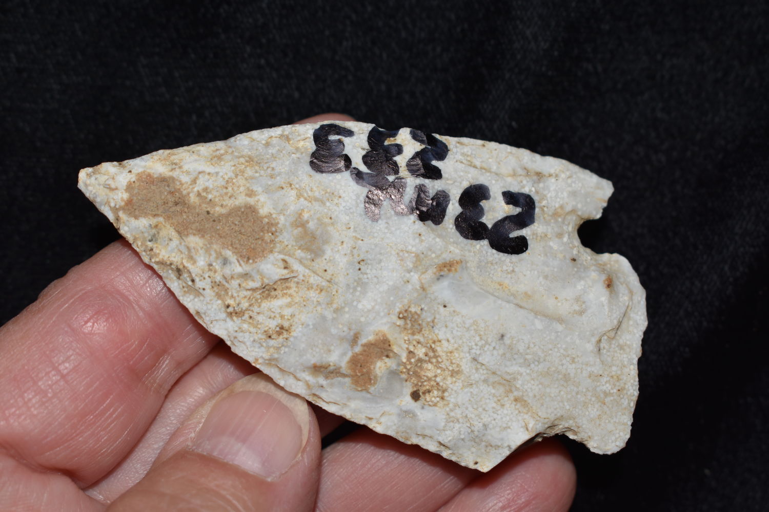 3 1/8″ Etley, found in Miller County Missouri on the Miller Site (23ML233) by Alan D. Miller. Authentic Native American Arrowhead