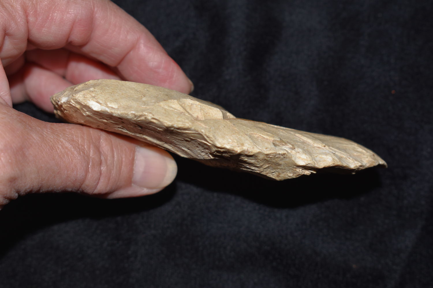 4 1/2″ Archaic Blade, found in Miller County Missouri on the Miller Site (23ML233) by Alan D. Miller. Authentic Native American Arrowhead