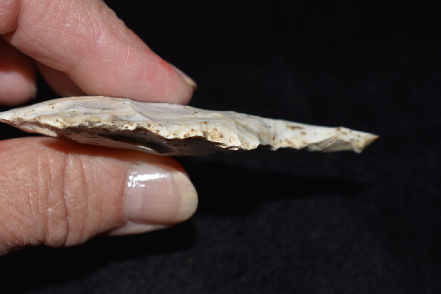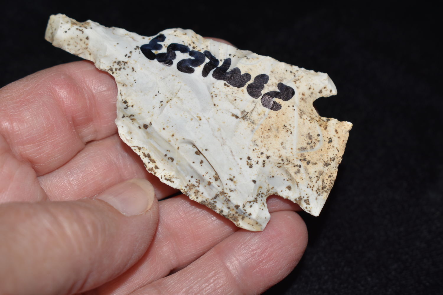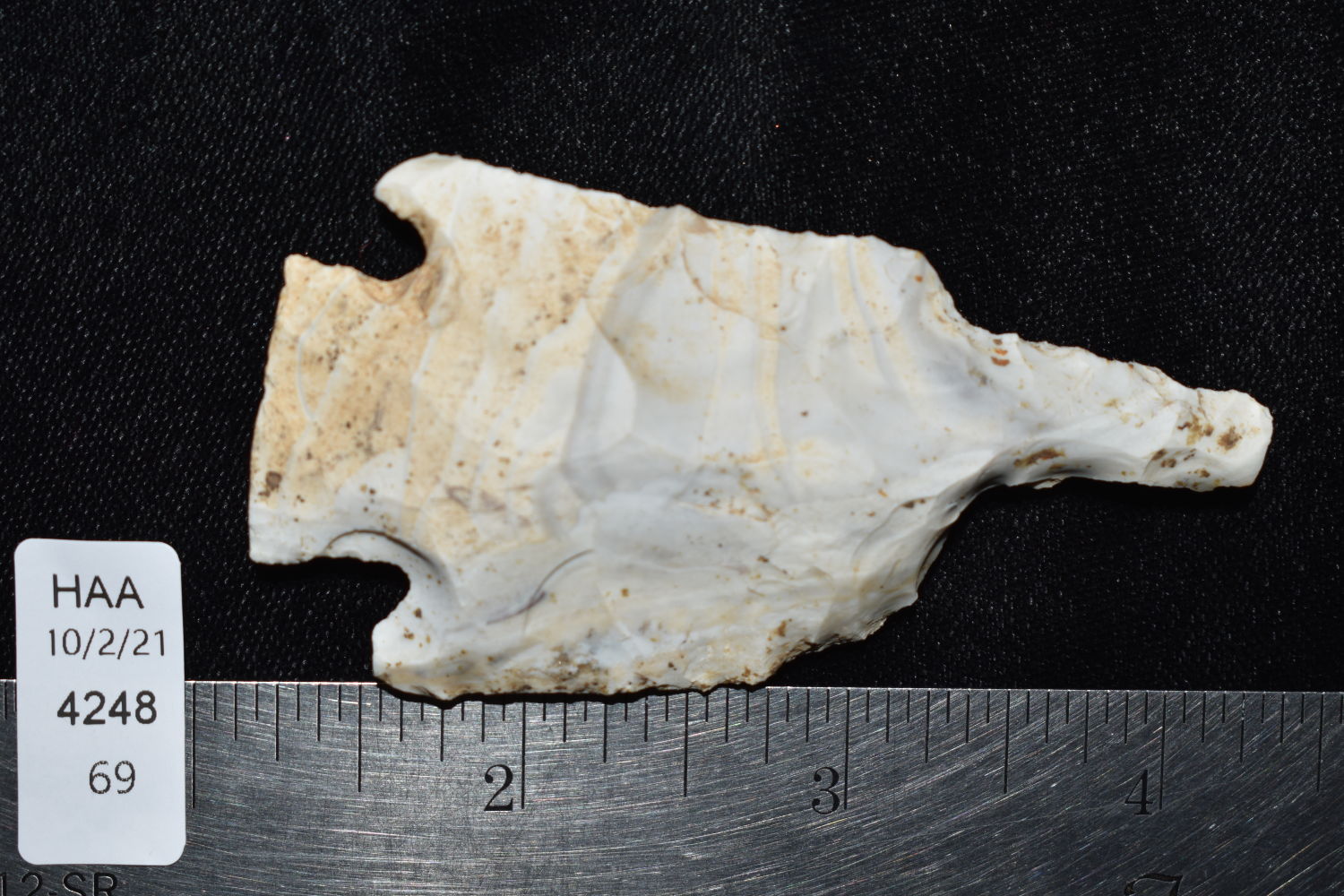 3 1/8″ Etley Drill, found in Miller County Missouri on the Miller Site (23ML233) by Alan D. Miller. Authentic Native American Arrowhead
