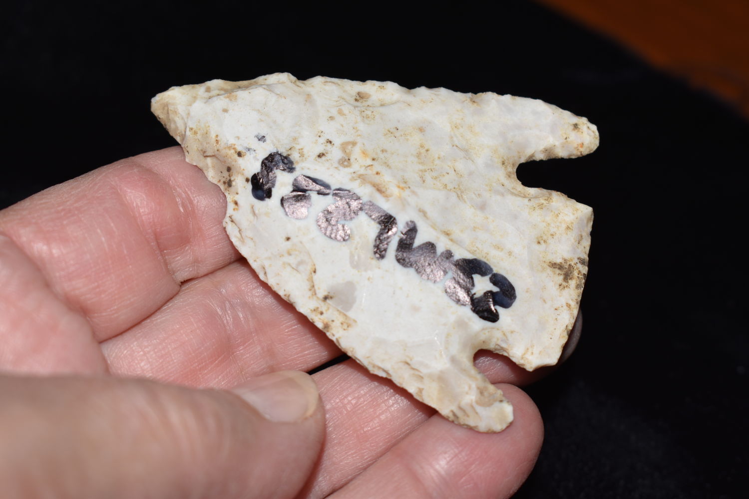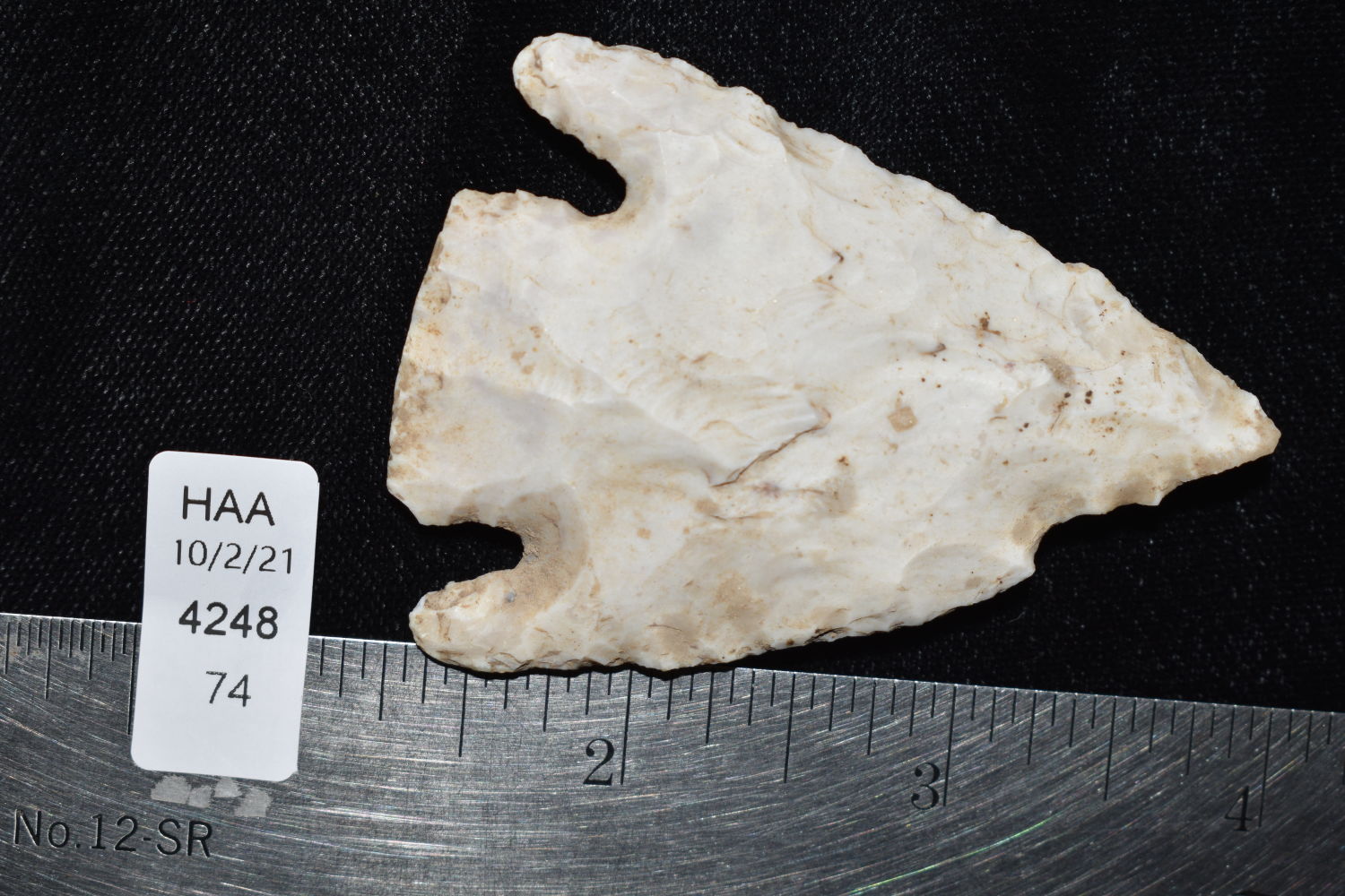2 5/8″ Smith, found in Miller County Missouri on the Miller Site (23ML233) by Alan D. Miller. Authentic Native American Arrowhead