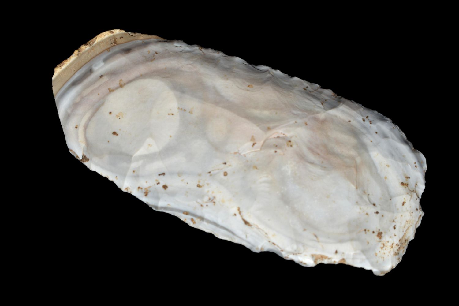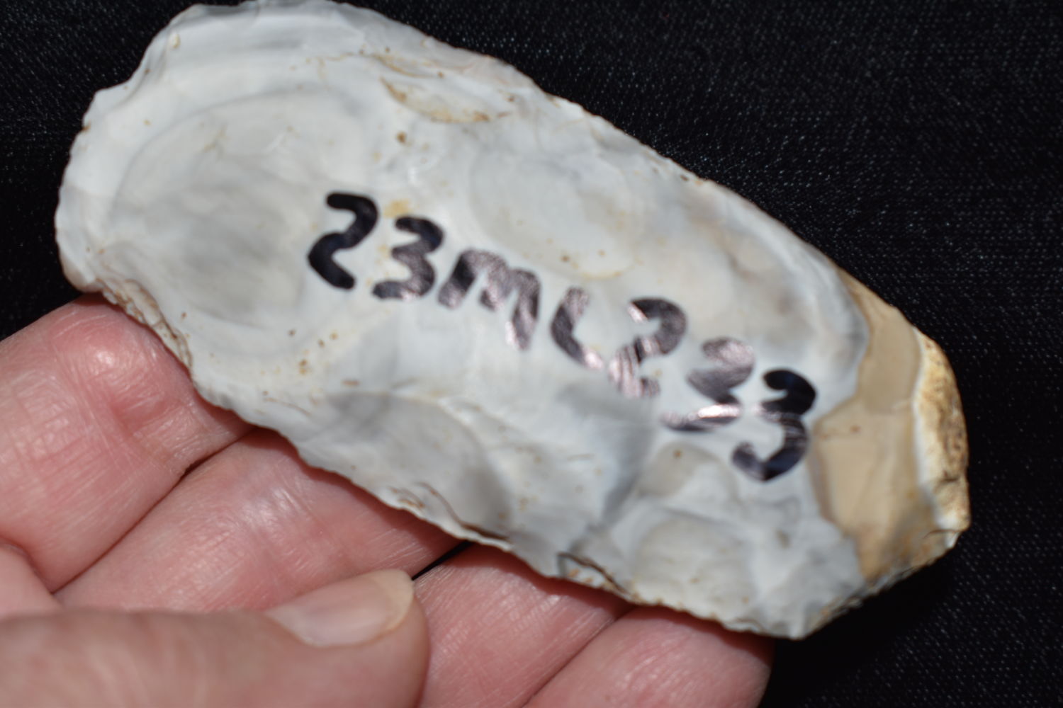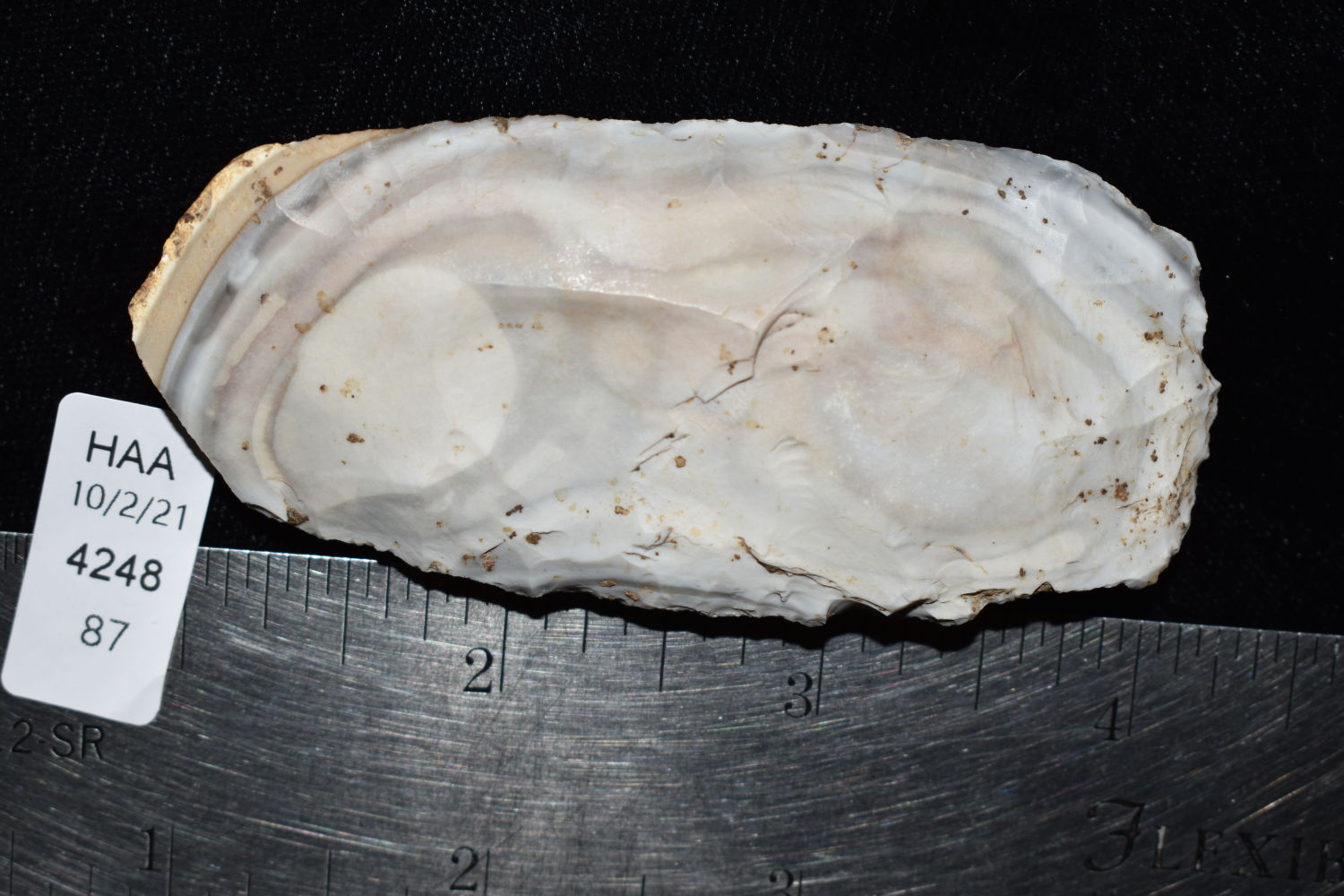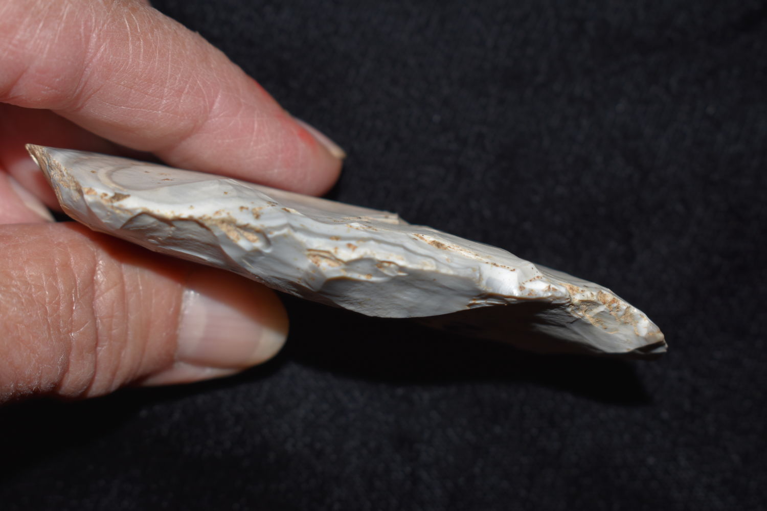 3 1/4″ Mozarkite Flint Celt found in Miller County Missouri on the Miller Site (23ML233) by Alan D. Miller. Authentic Native American Arrowhead