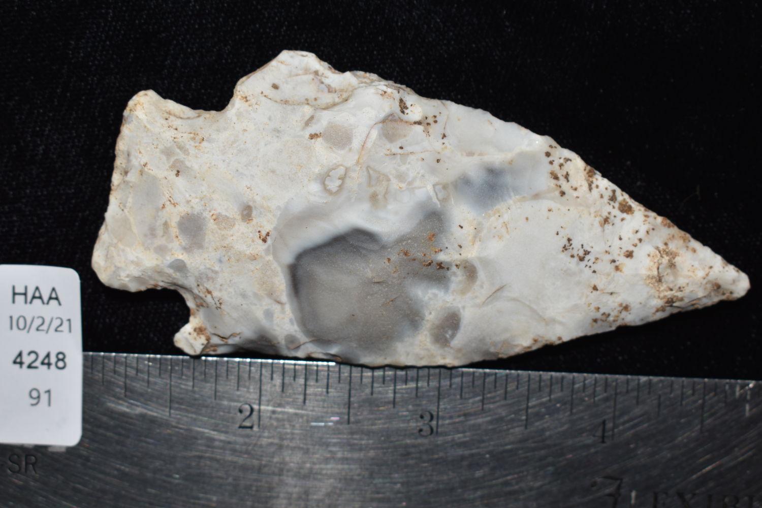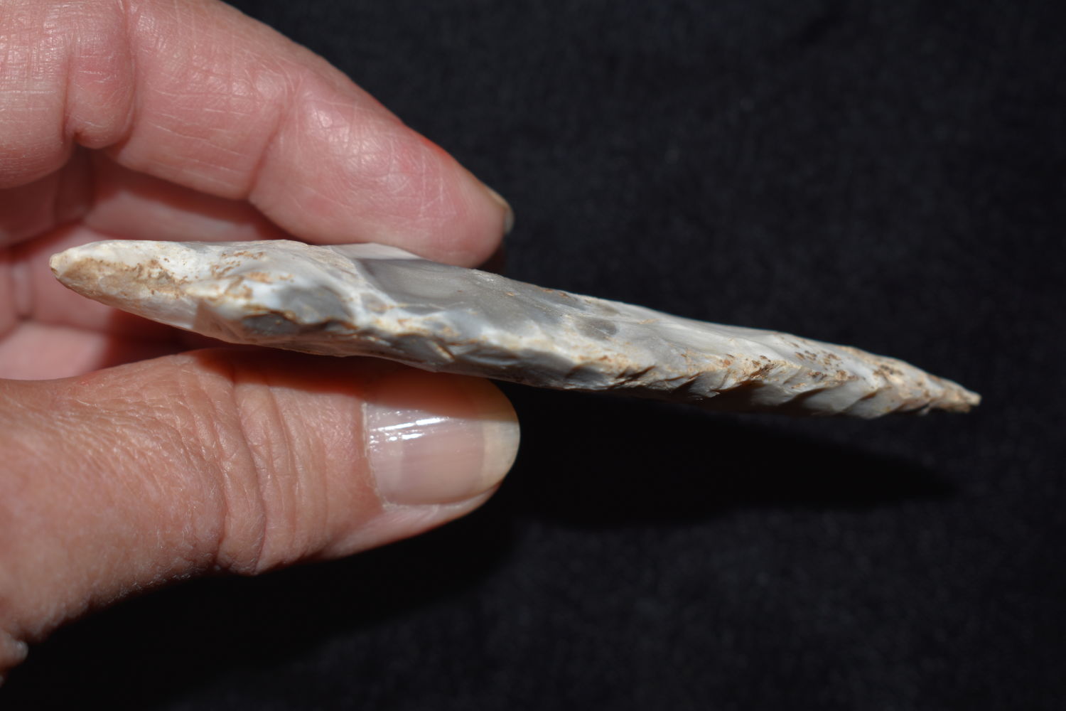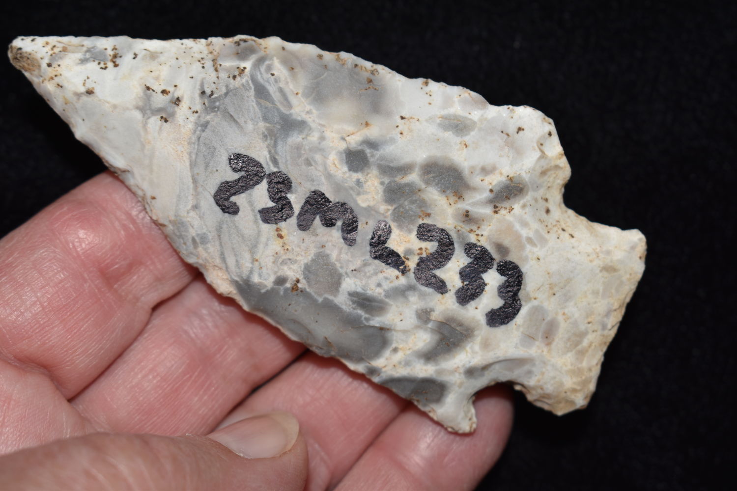 3 1/2″ Etley found in Miller County Missouri on the Miller Site (23ML233) by Alan D. Miller. Authentic Native American Arrowhead