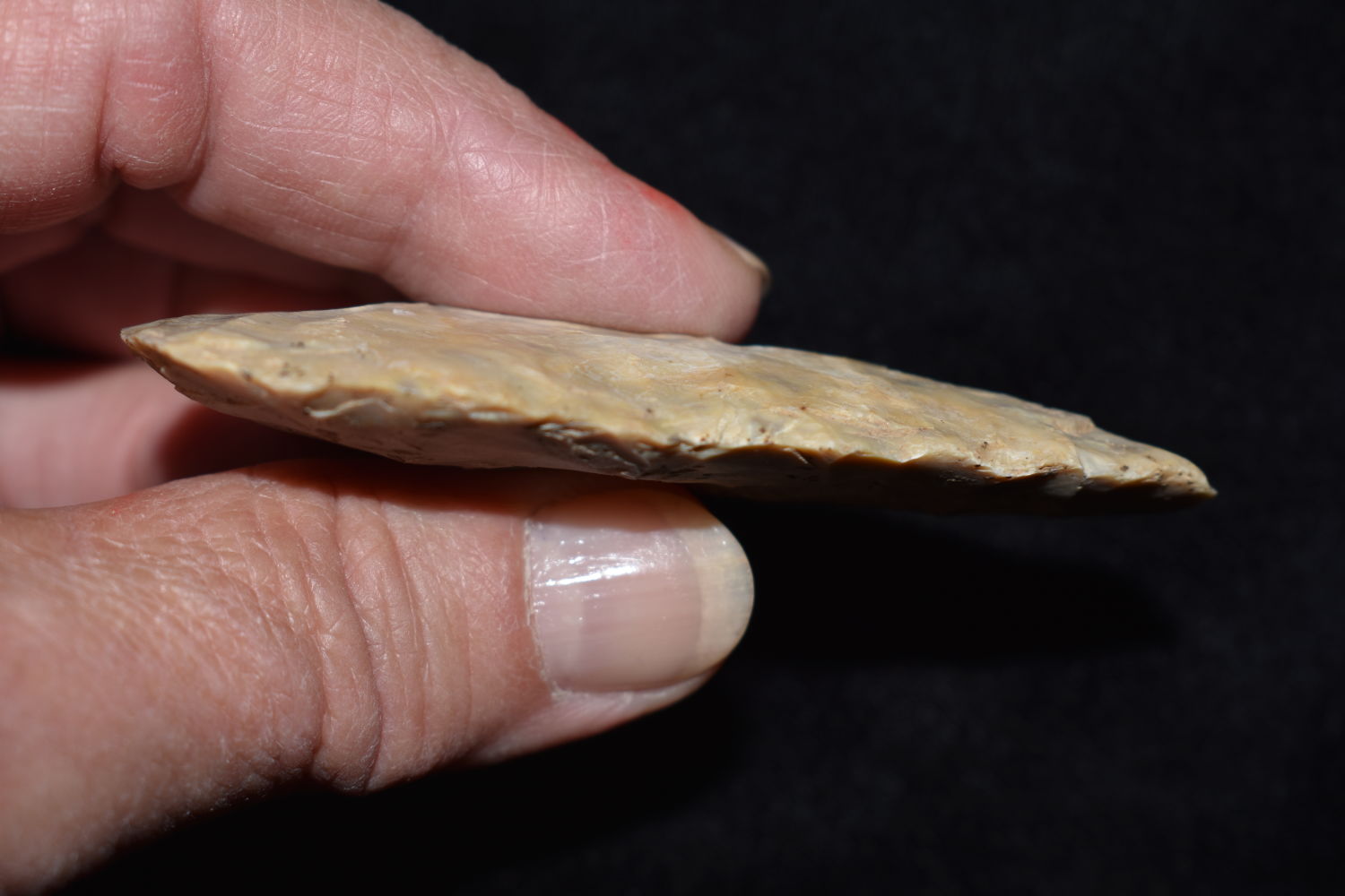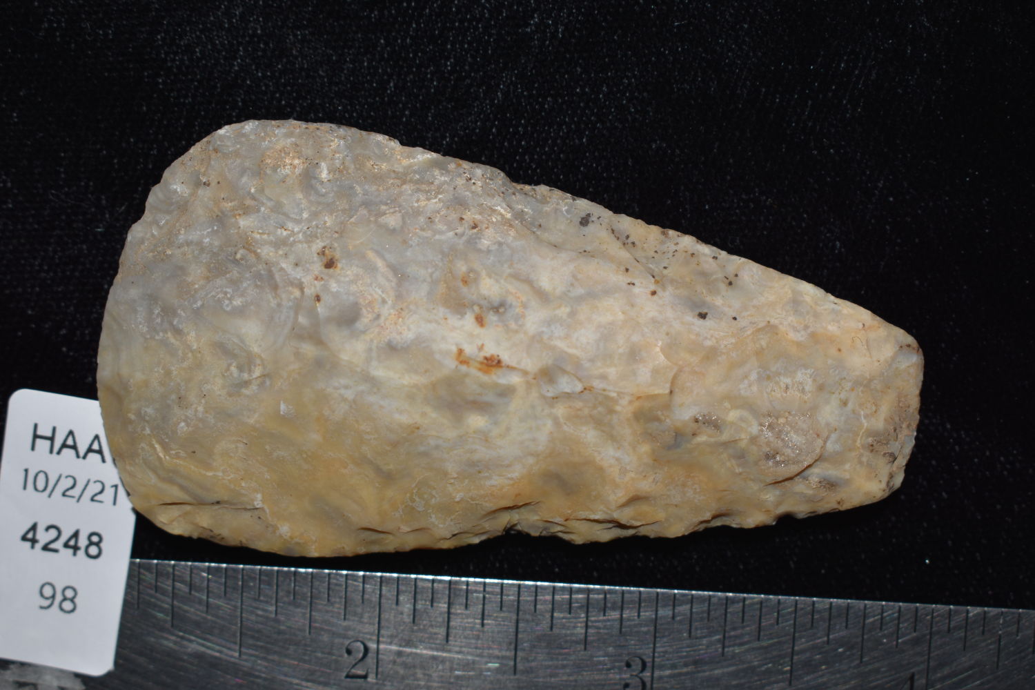 2 7/8″ Flint Celt found in Miller County Missouri on the Miller Site (23ML233) by Alan D. Miller. Authentic Native American Arrowhead