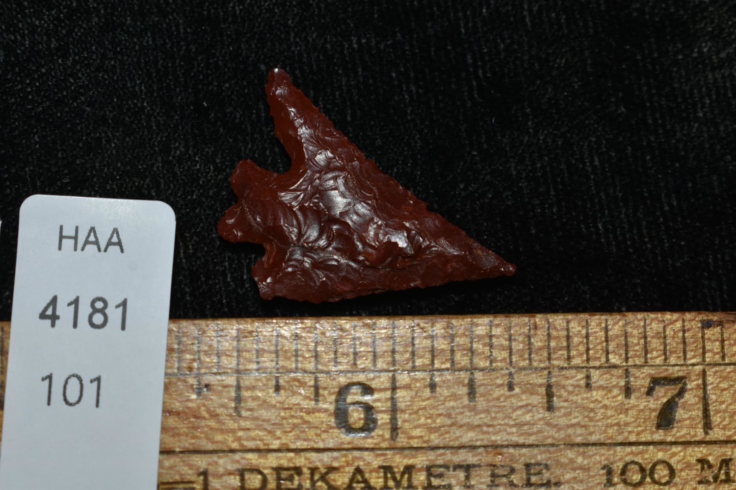 1 1/8" Columbia Plateau, Pictured in Central States October 1992. Found near Vantange Washington (2mi. North To 10mi. South) in Kittitas Co. (Columbia River Beaches). Screened 1949-59 by Vernon G. & Nancy. Best of 20,000 pieces found. These were purchased from Vernon on 10/12/1979 by Byron Anderson. Excellent Columbia River Gem Point! Authentic Native American Arrowhead Artifact.