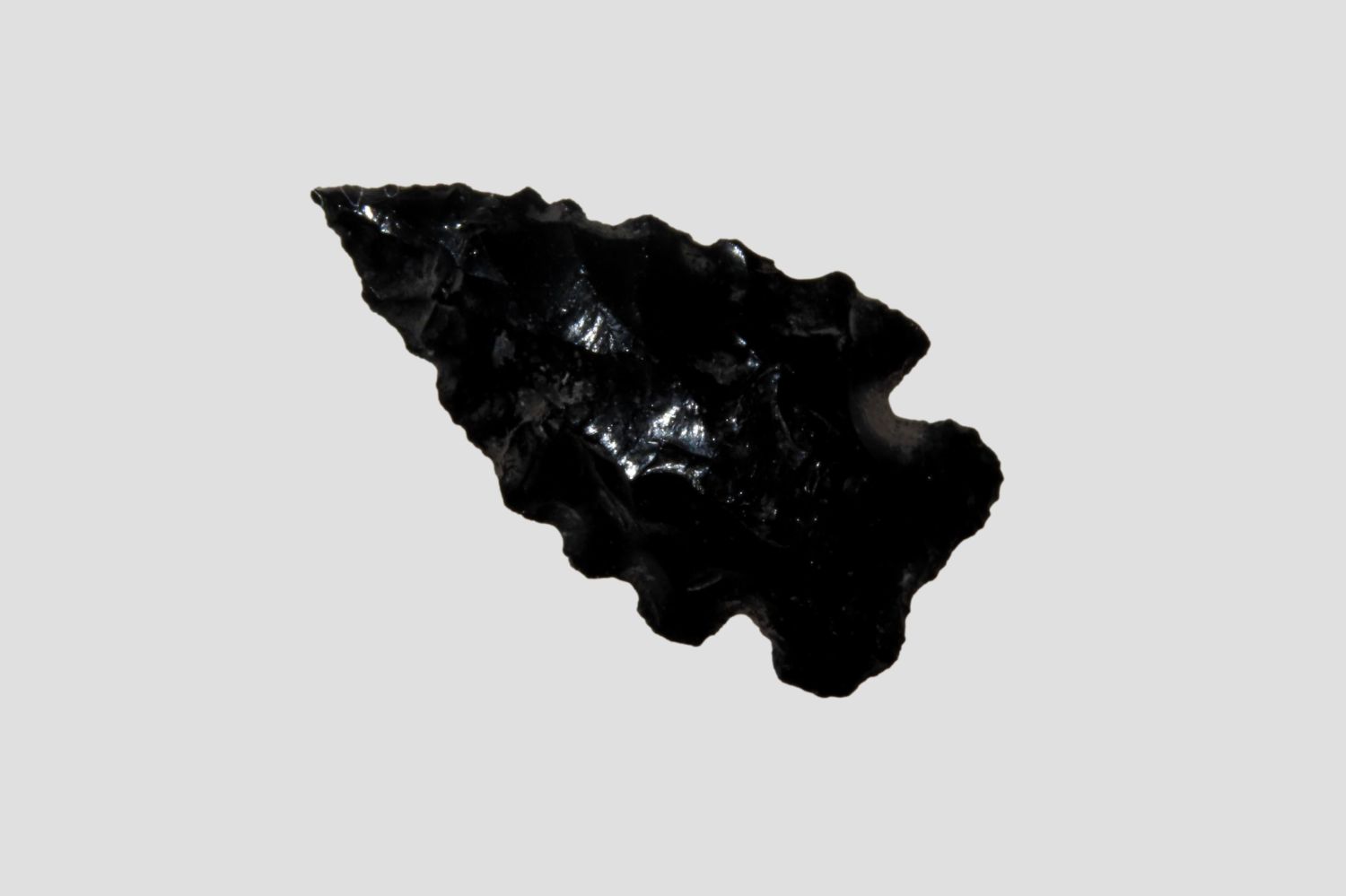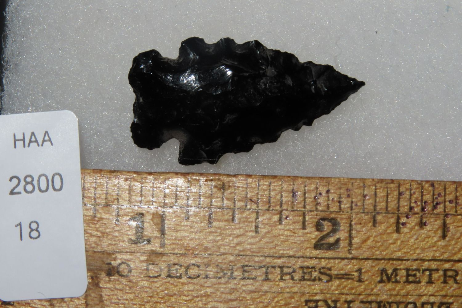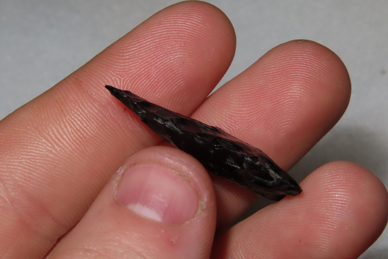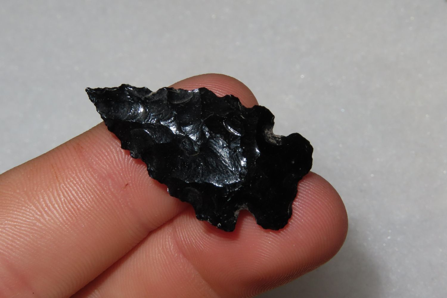 1 1/4" Obsidian Serrated Corner Notch found in Lake County Oregon, Authentic Native American Arrowhead Artifact