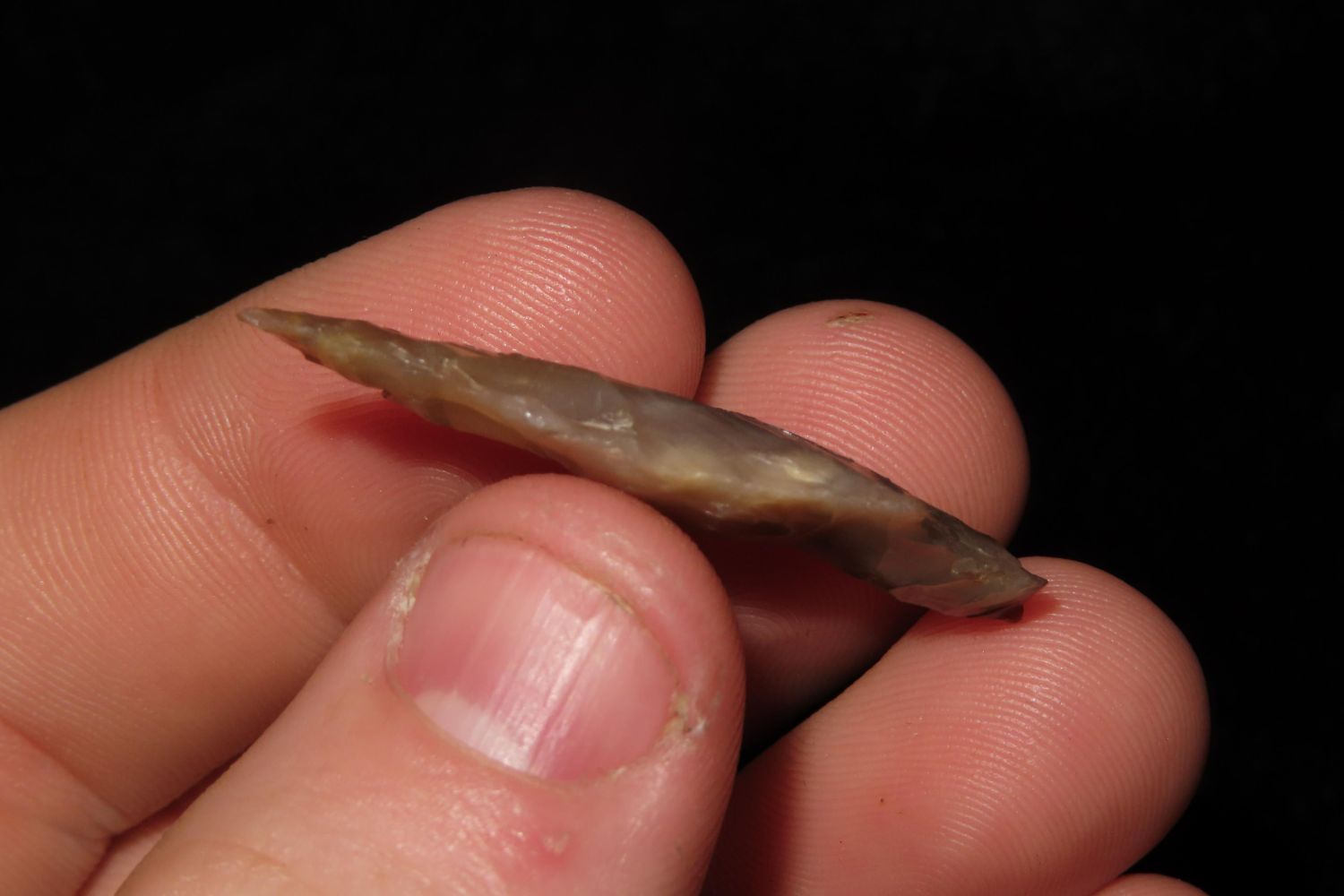 1 1/2" Sierra Contracting Stem, Made of Highly Translucent Material, found in Lake County Oregon, Authentic Native American Arrowhead Artifact