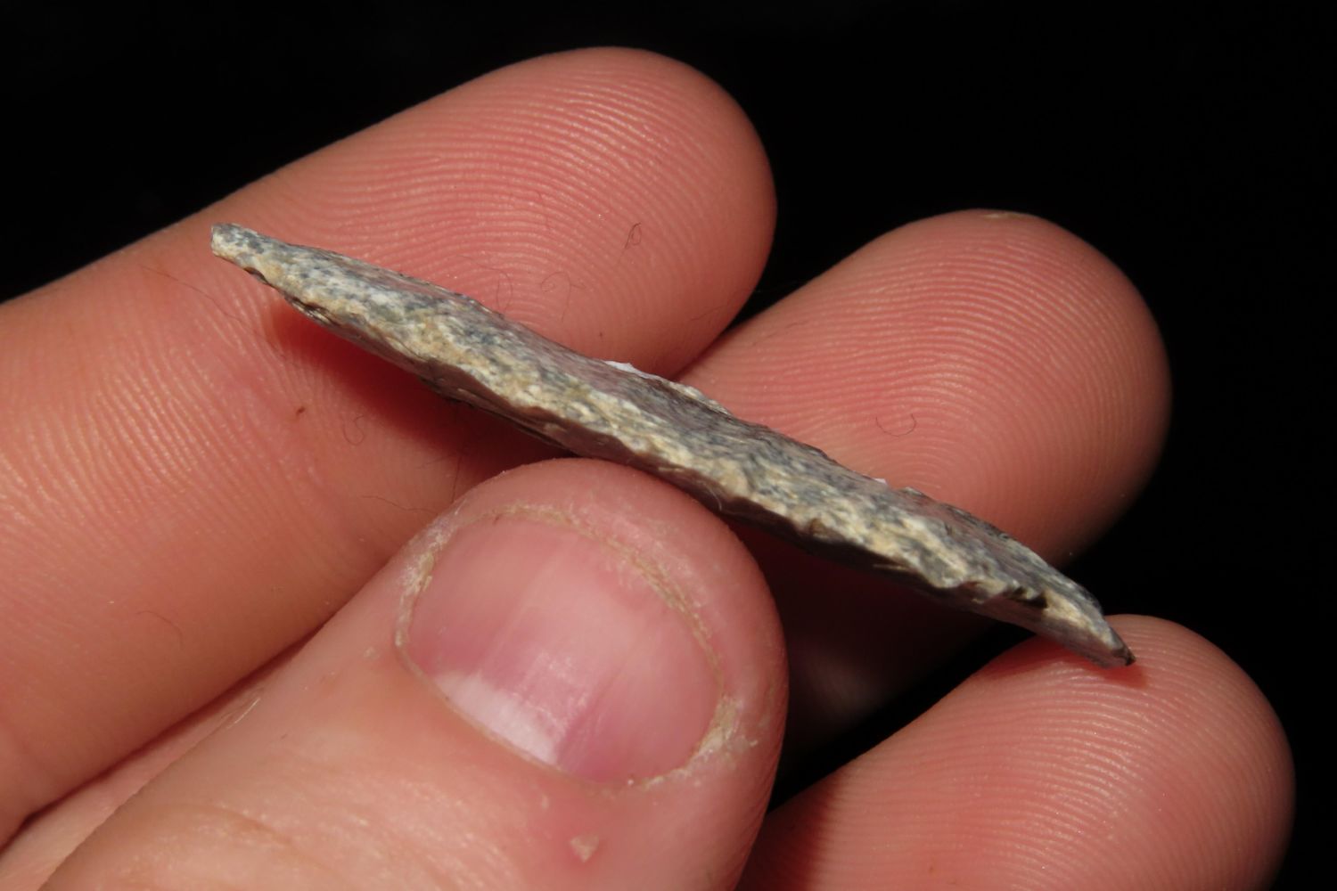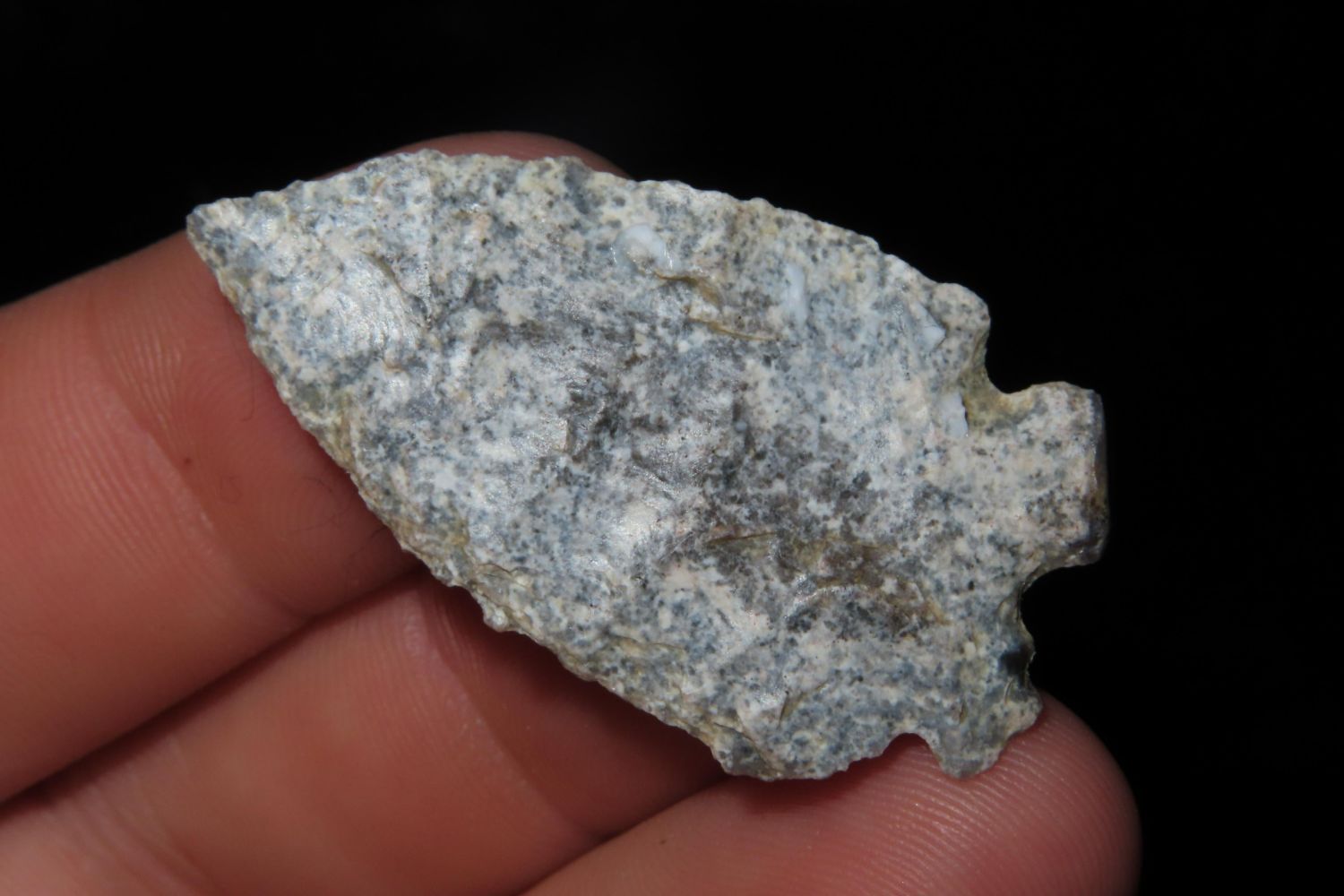 1 1/2" Oxbow found in Crook County Wyoming in the Inyan Kara Creek area, Collection of Ernie Banks, Rancher. Authentic Native American Arrowhead Artifact