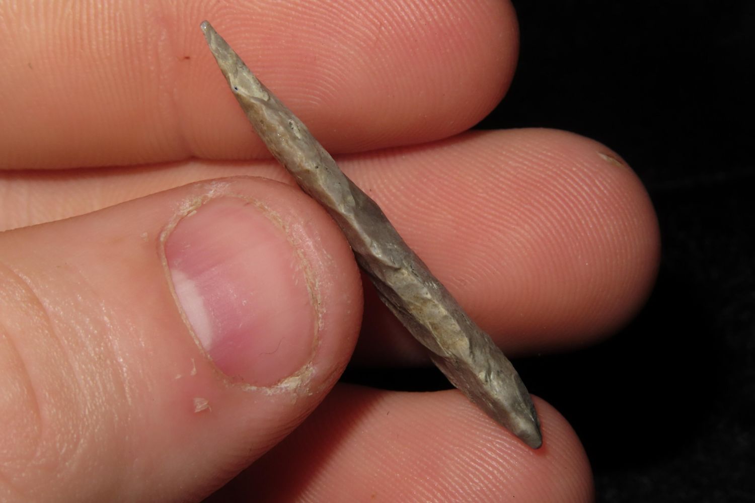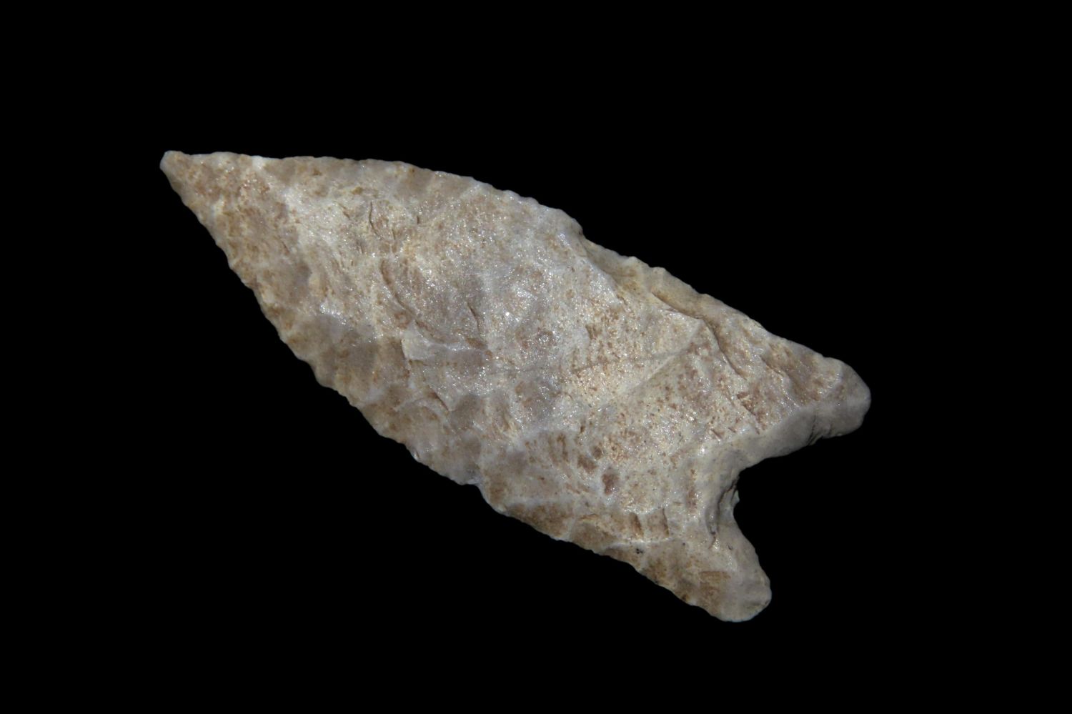 1 3/8" Oxbow found in Crook County Wyoming in the Inyan Kara Creek area, Collection of Ernie Banks, Rancher. Authentic Native American Arrowhead Artifact