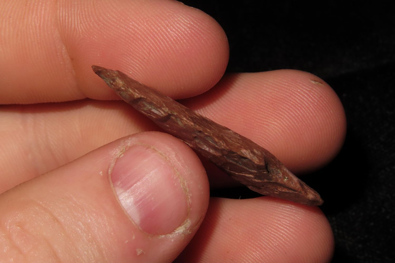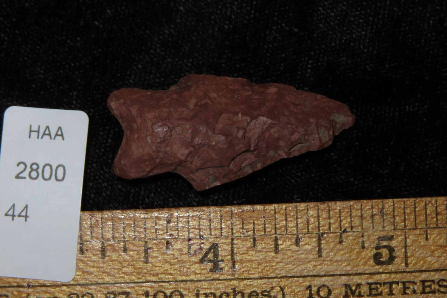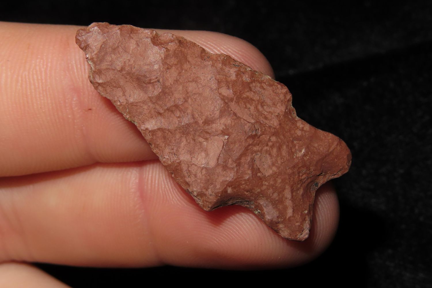 1 1/2" Yonkee found in Crook County Wyoming in the Inyan Kara Creek area, Collection of Ernie Banks, Rancher. Authentic Native American Arrowhead Artifact