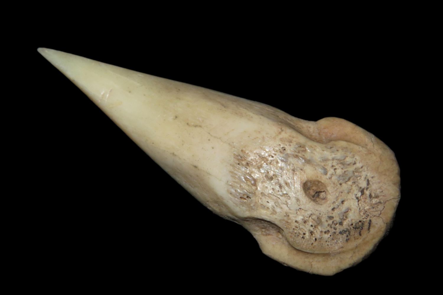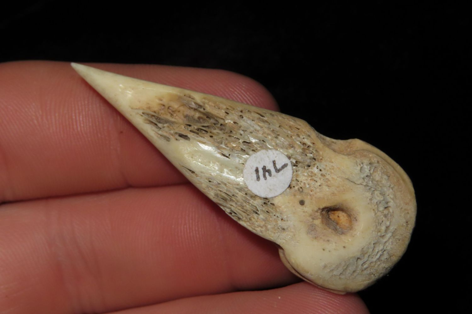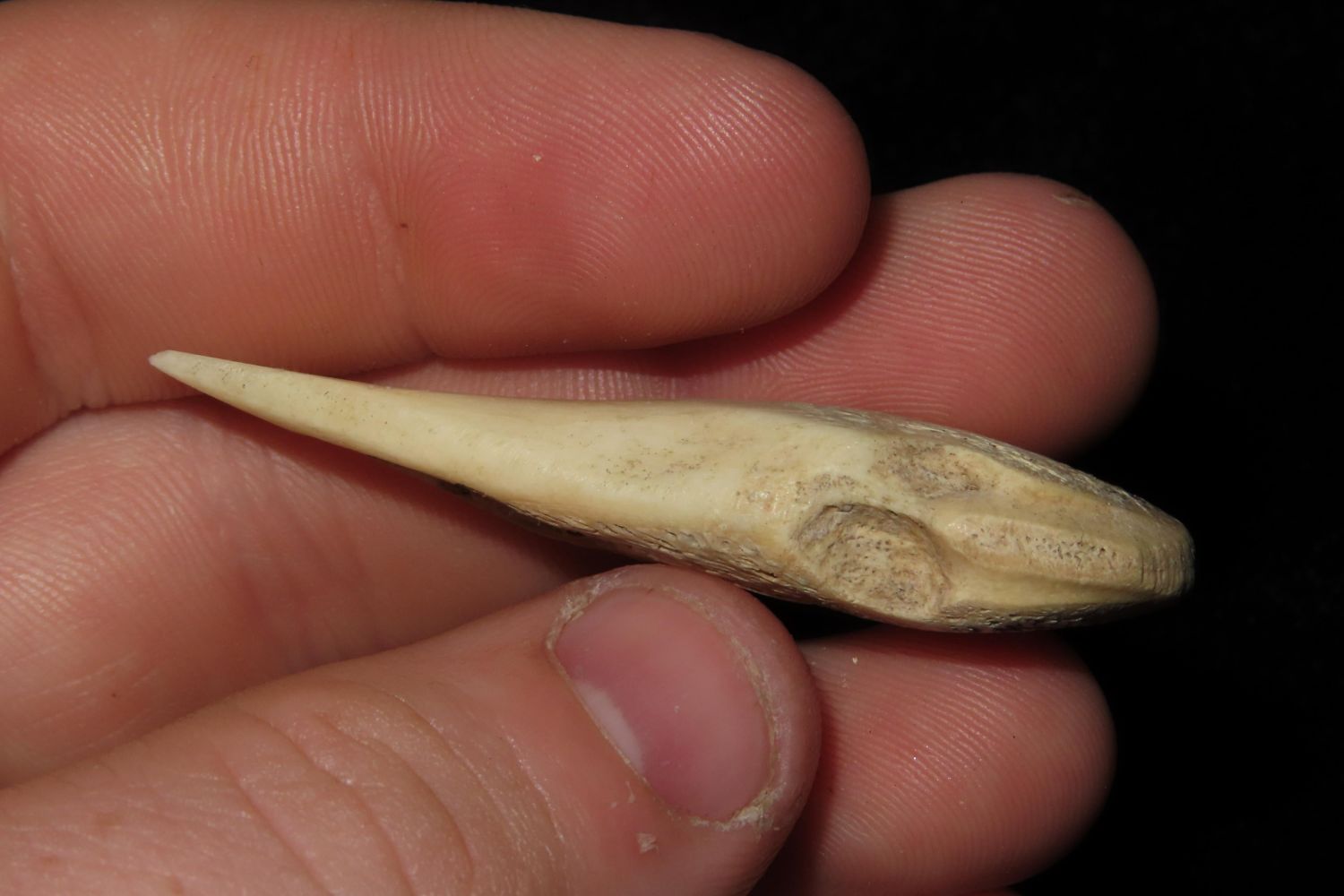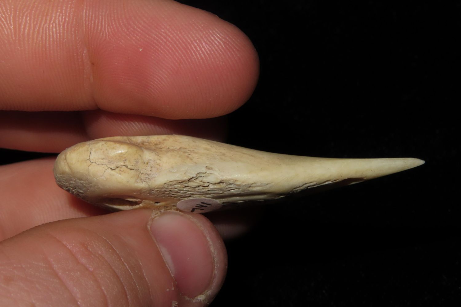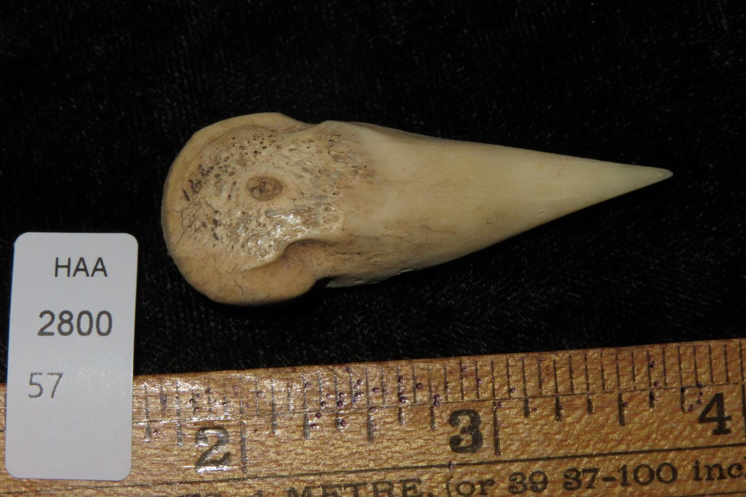 2 1/26" Bone Awl found in Morton County North Dakota. Collected by August and Pluma Spiss in the 1950’s – August was a school adminstrator in Mandan.