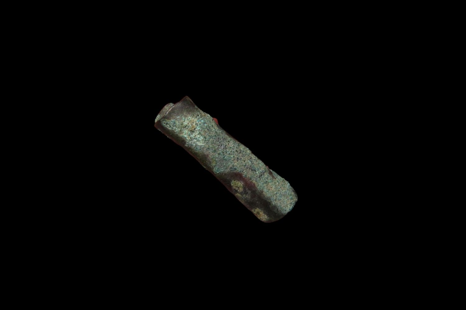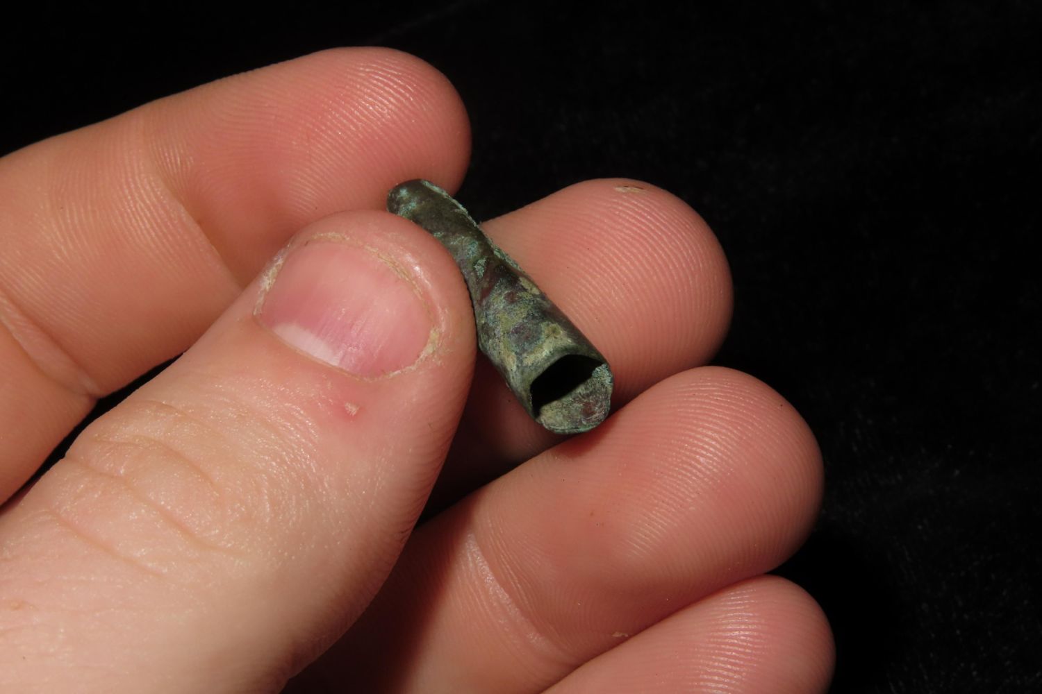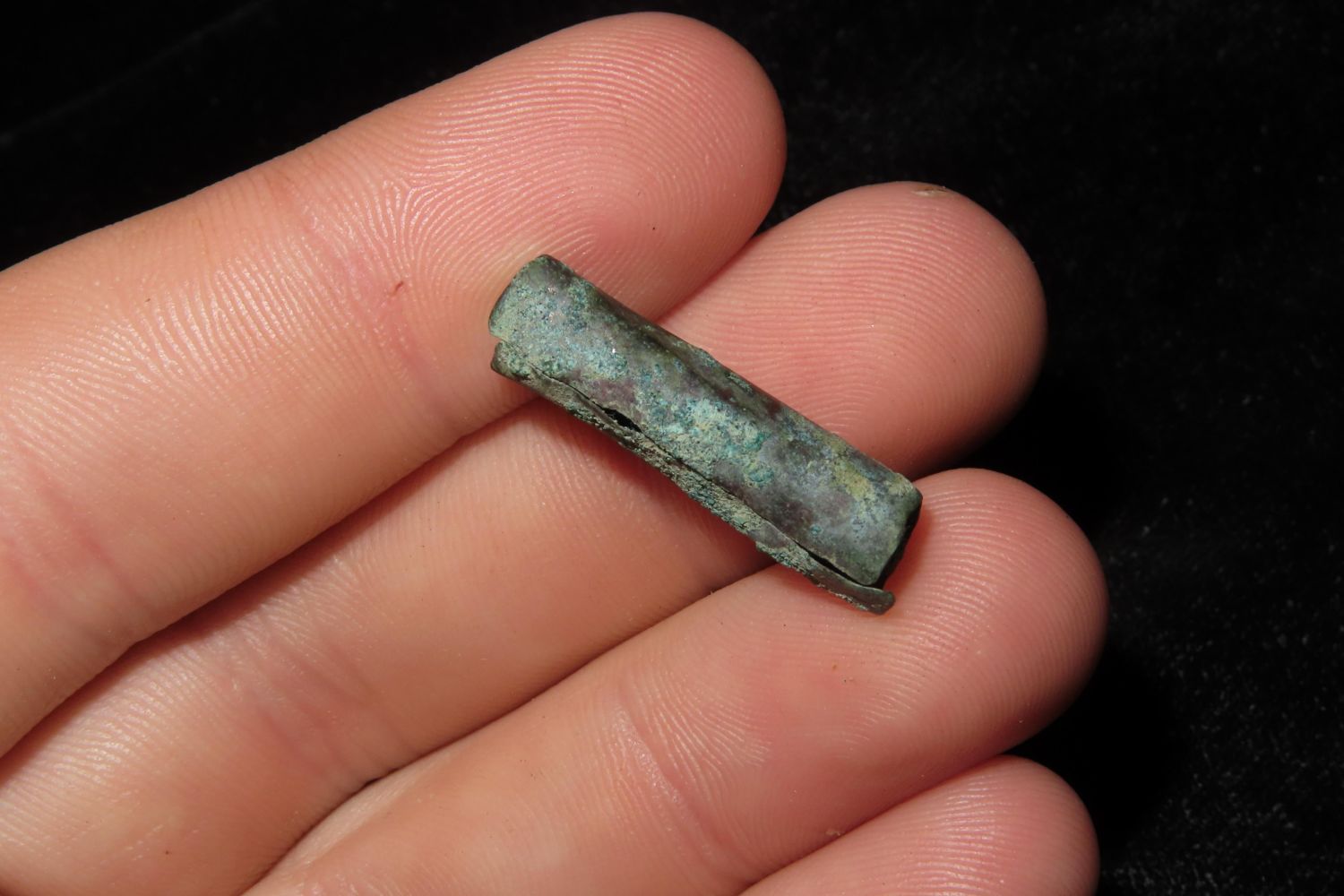 7/8" Historic Copper Tinkler found in Morton County North Dakota. Collected by August and Pluma Spiss in the 1950’s – August was a school adminstrator in Mandan.