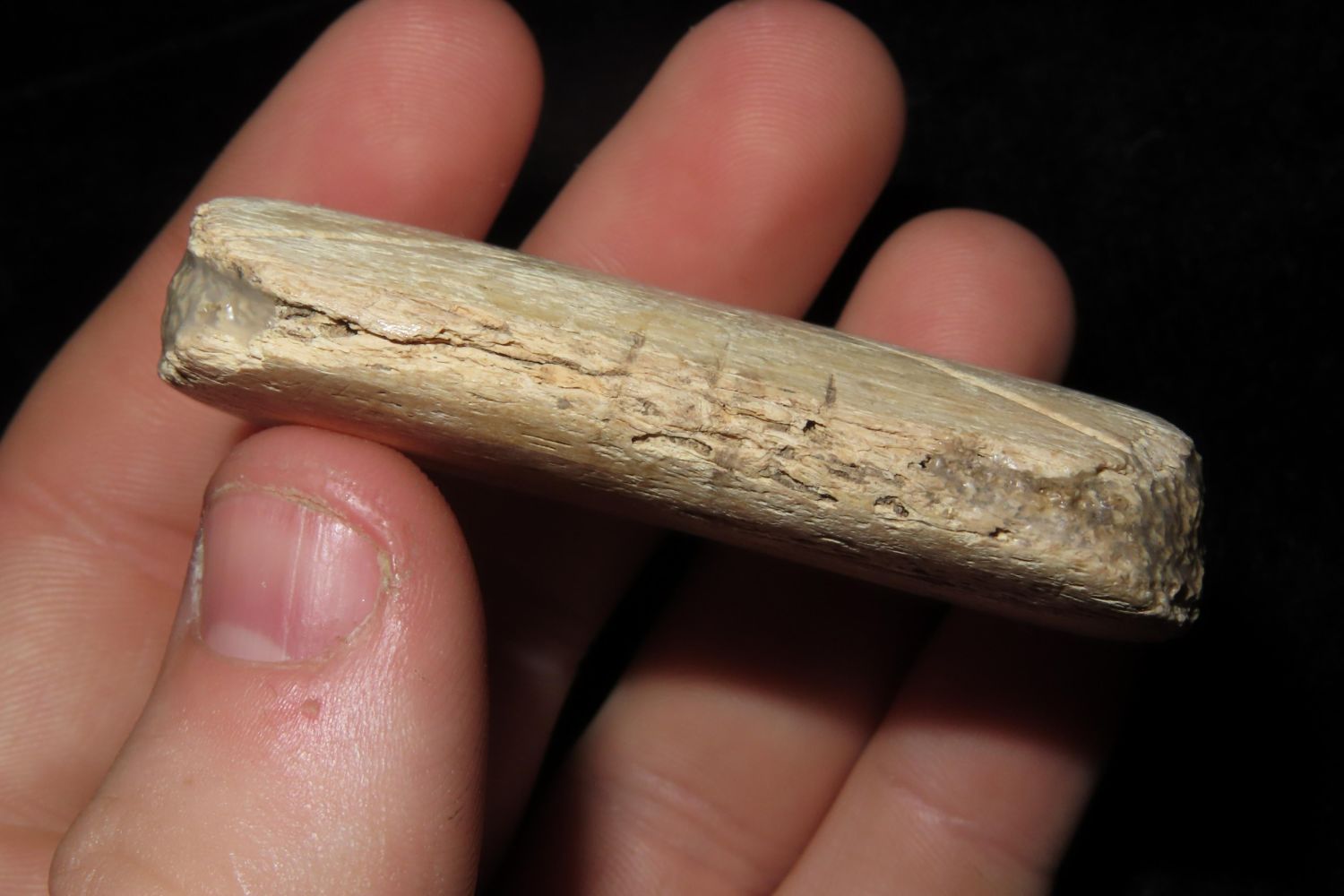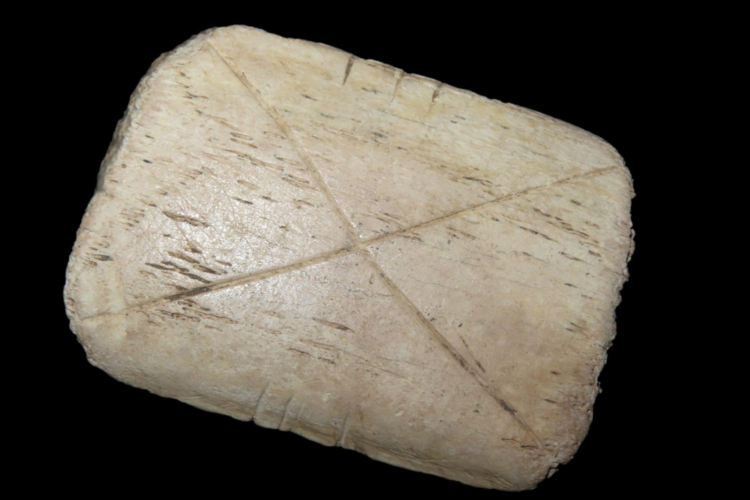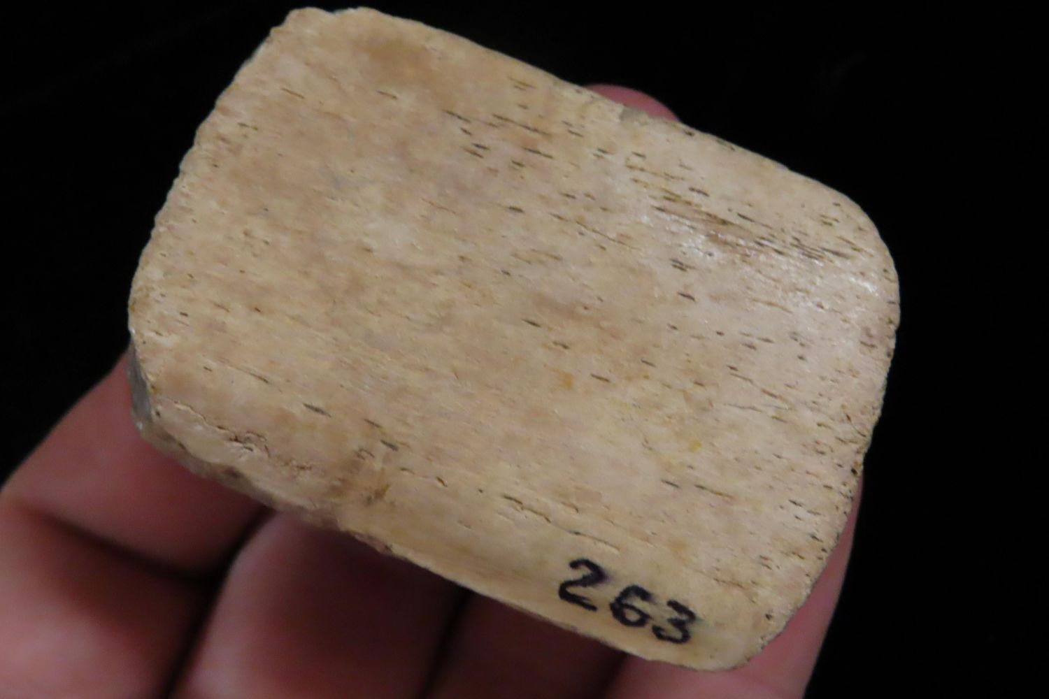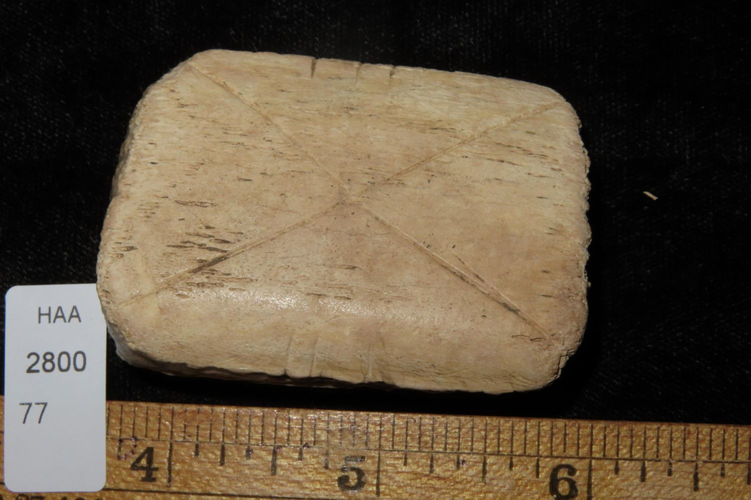 2 1/4" Engraved Bone Tablet found in Morton County North Dakota, Ex. Heflin Collection. Authentic Native American Arrowhead Artifact