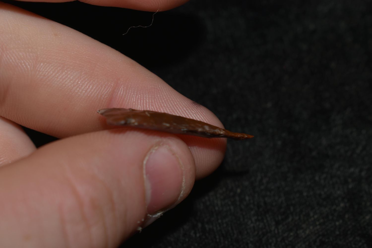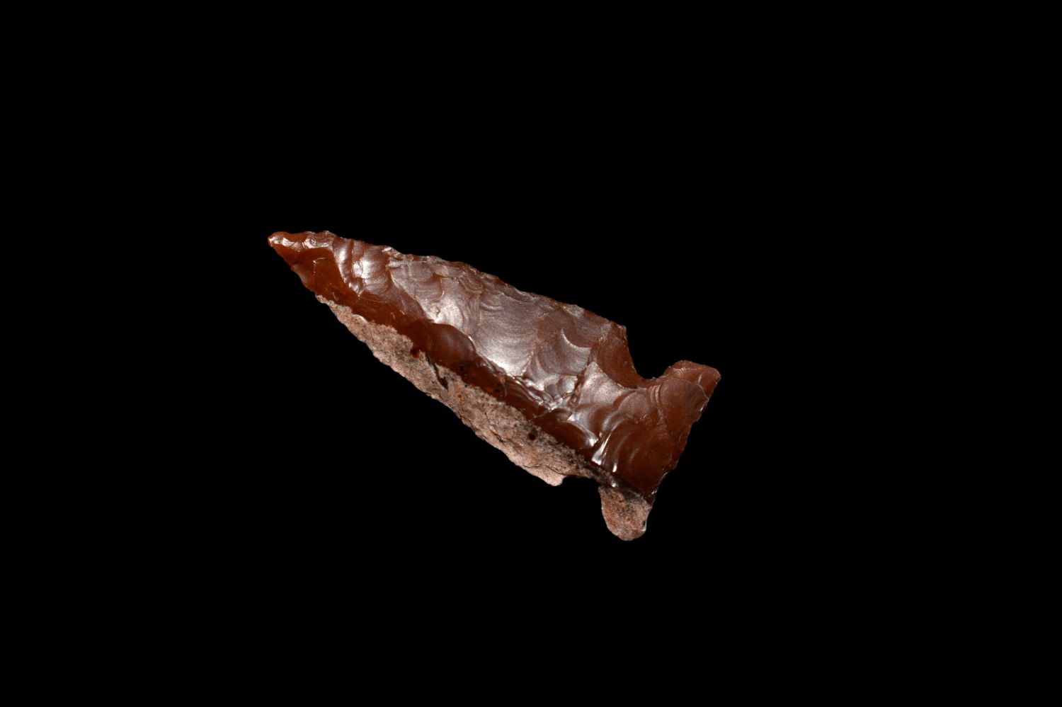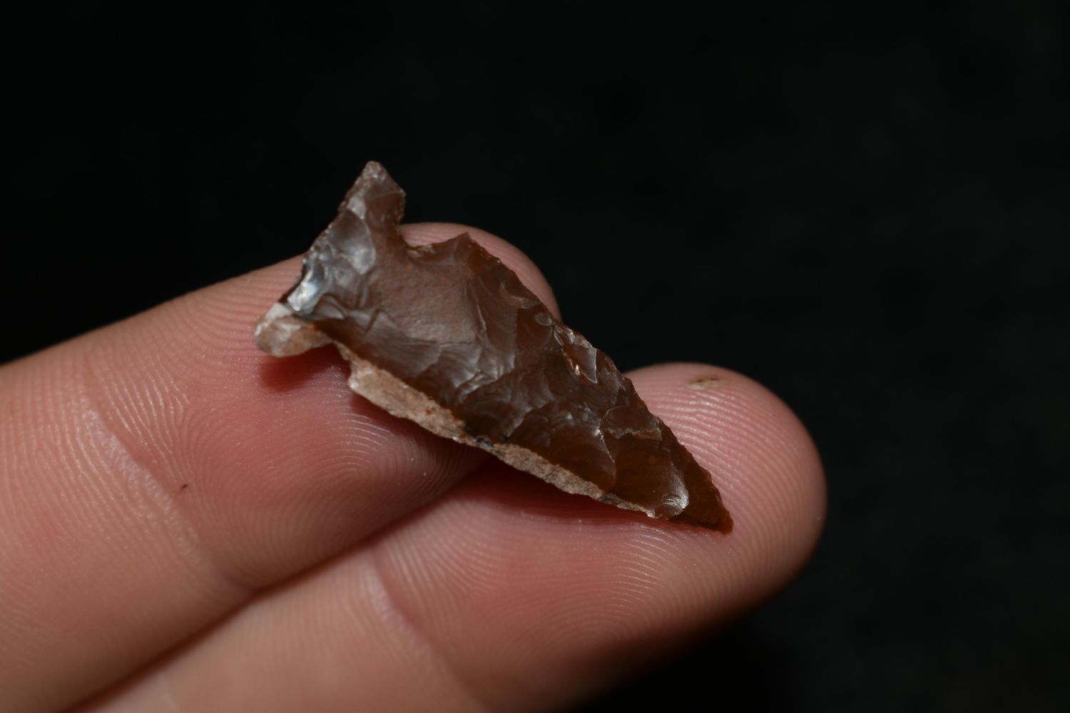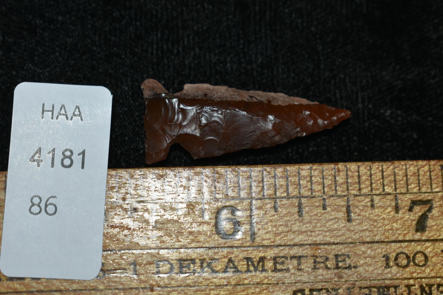 1 1/16" Northern, Pictured in Central States October 1992. Found near Vantange Washington (2mi. North To 10mi. South) in Kittitas Co. (Columbia River Beaches). Screened 1949-59 by Vernon G. & Nancy. Best of 20,000 pieces found. These were purchased from Vernon on 10/12/1979 by Byron Anderson. Excellent Columbia River Gem Point! Authentic Native American Arrowhead Artifact.