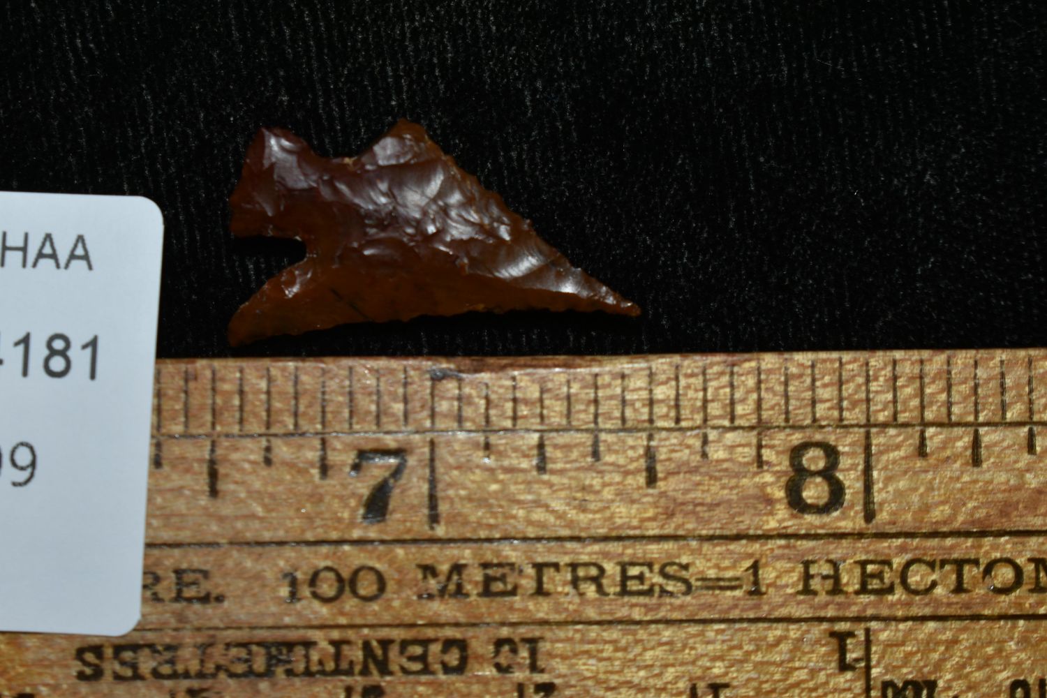 1" Columbia Plateau, Pictured in Central States October 1992. Found near Vantange Washington (2mi. North To 10mi. South) in Kittitas Co. (Columbia River Beaches). Screened 1949-59 by Vernon G. & Nancy. Best of 20,000 pieces found. These were purchased from Vernon on 10/12/1979 by Byron Anderson. Excellent Columbia River Gem Point! Authentic Native American Arrowhead Artifact.b