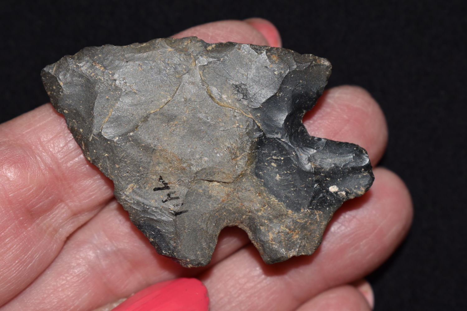 2 1/8″ Cotaco Creek found in Ohio, Ex Dr. Jim Mills Coll. Authentic Native American Arrowhead