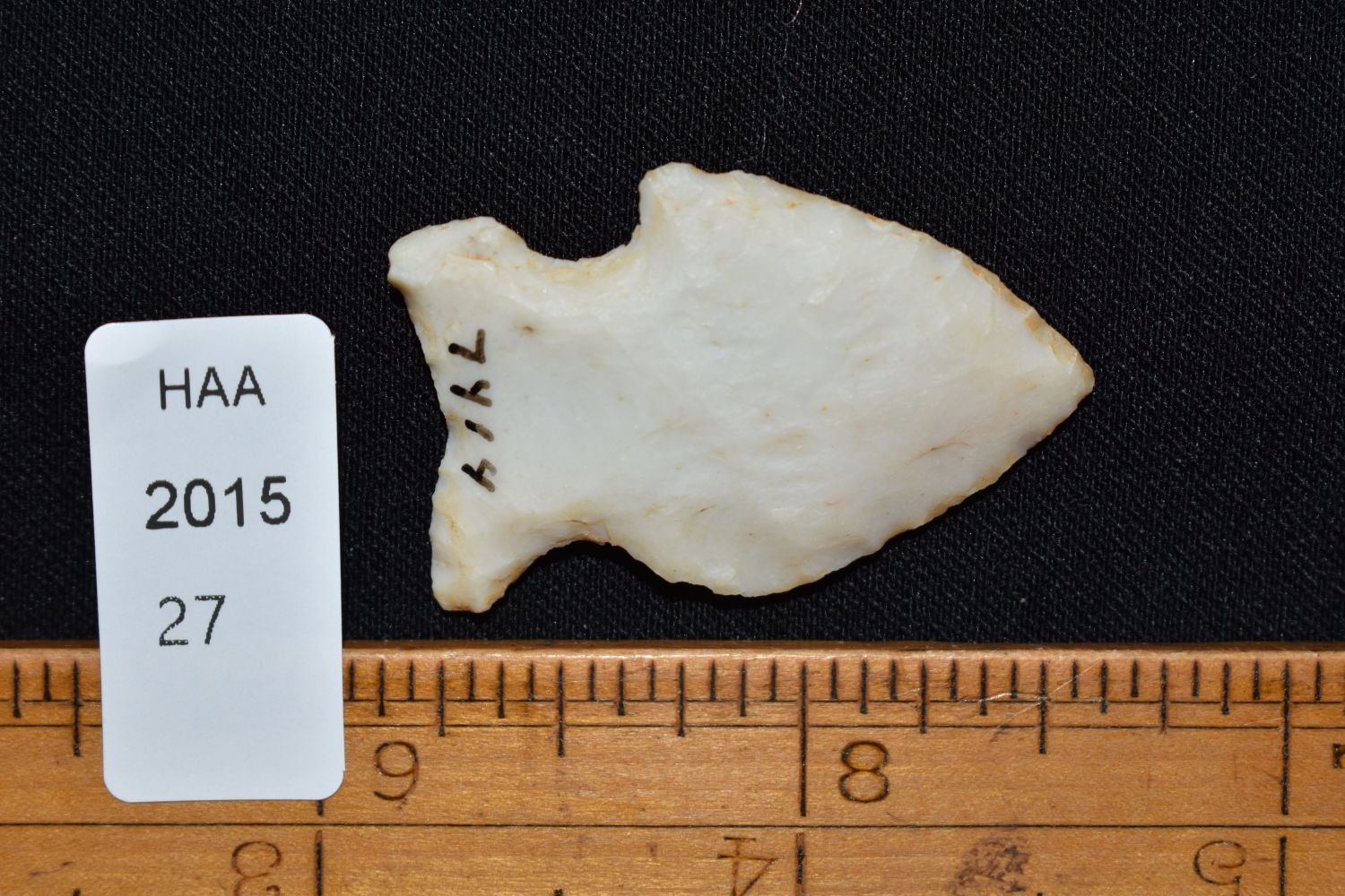 1 1/2″ Big Sandy found in Ohio, Ex Dr. Jim Mills Coll. Authentic Native American Arrowhead