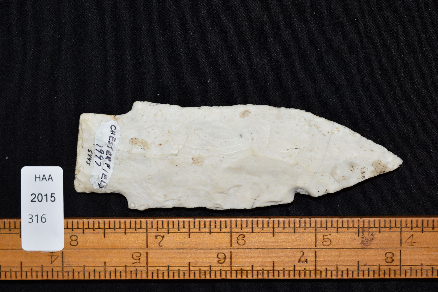 3 7/8″ Etley found in 1997 in Chesterfield, Authentic Native American Arrowhead