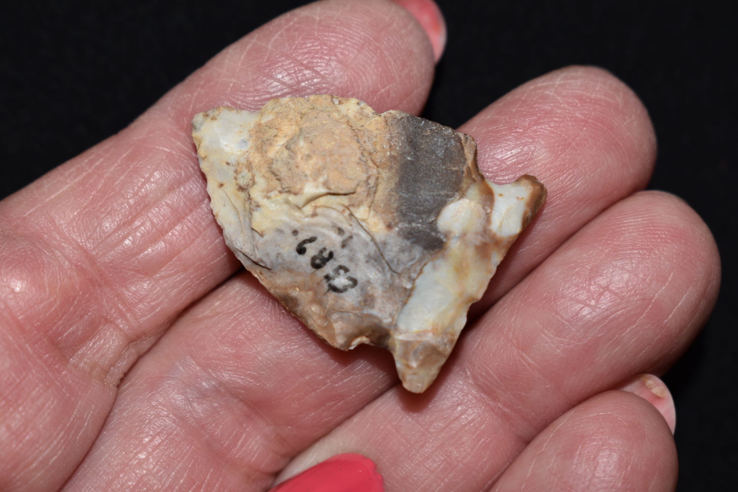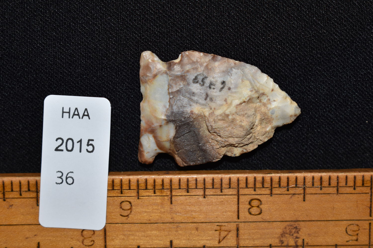 1 1/8″ Brewerton found in Ohio, Ex Dr. Jim Mills Coll. Authentic Native American Arrowhead