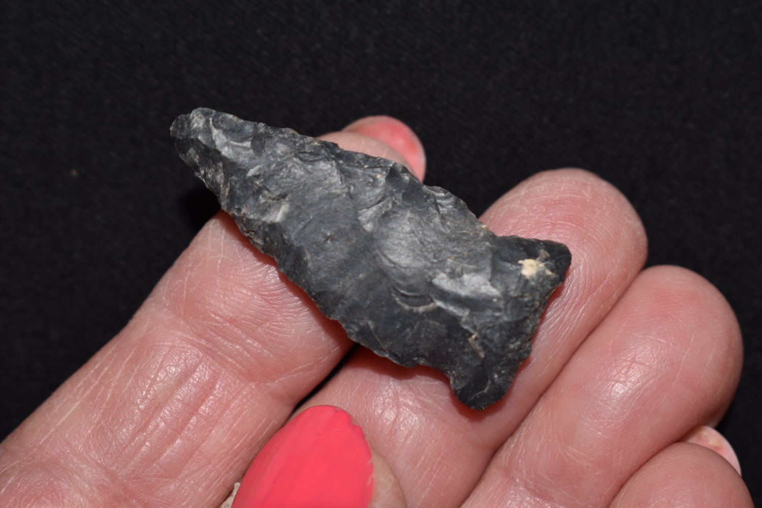 1 1/2″ Brewerton found in Ohio, Ex Dr. Jim Mills Coll. Authentic Native American Arrowhead