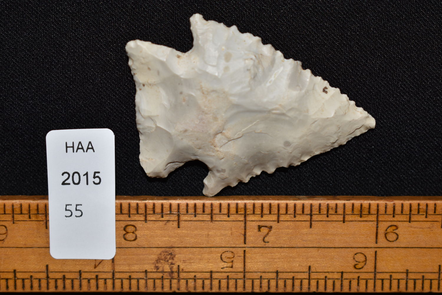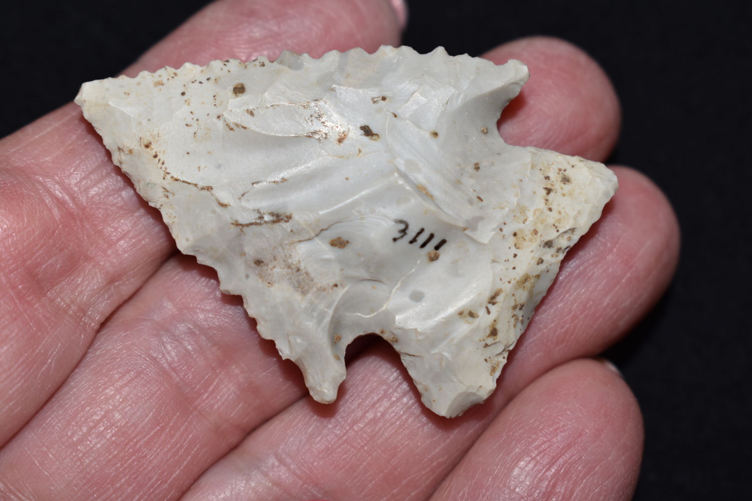 1 7/8″ Serrated Stemmed Point found in Missouri, Authentic Native American Arrowhead.