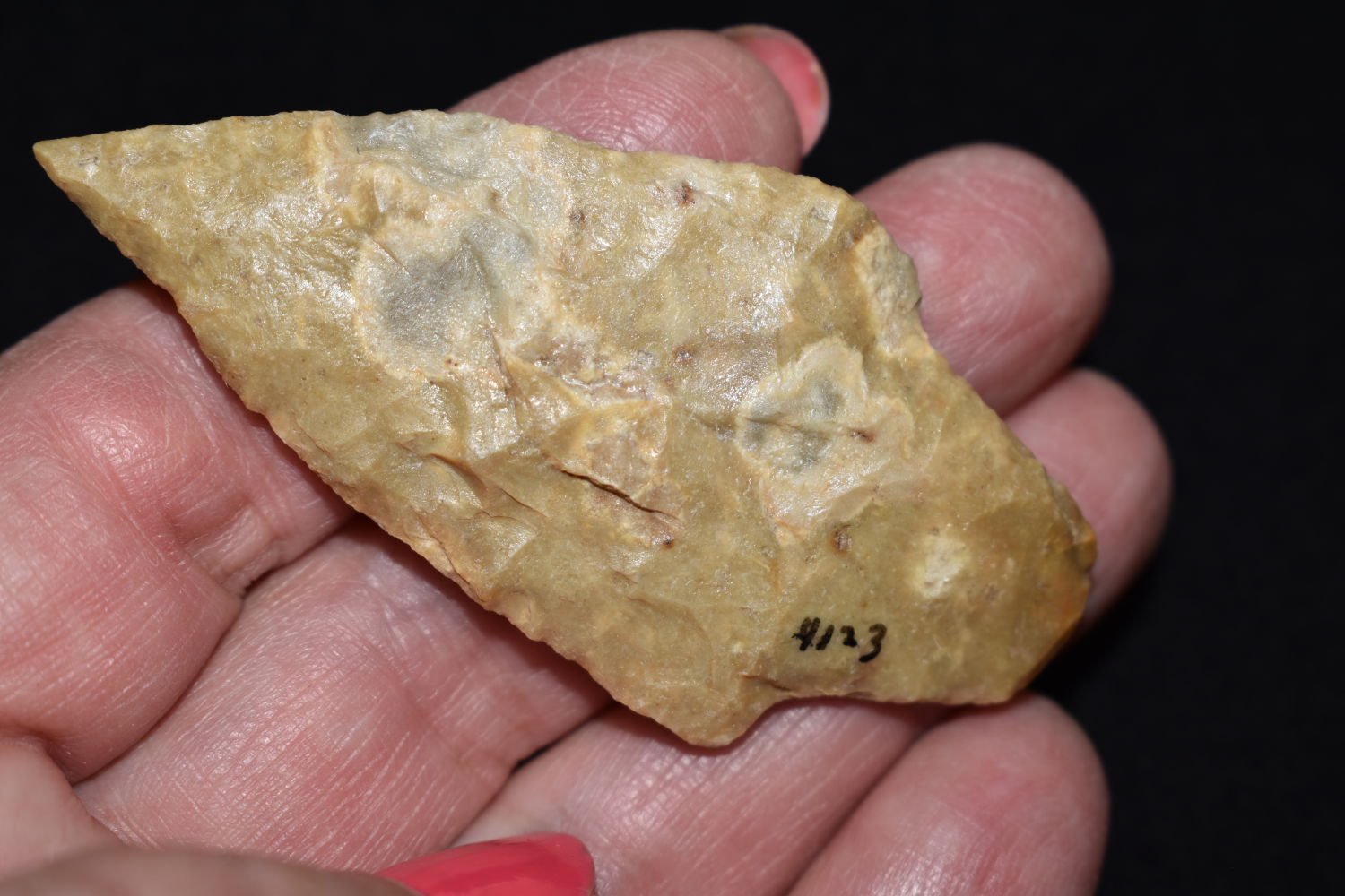 2 5/8″ Adena found in Southern Illinois, Ex Bruce Cox Collection, Authentic Native American Arrowhead