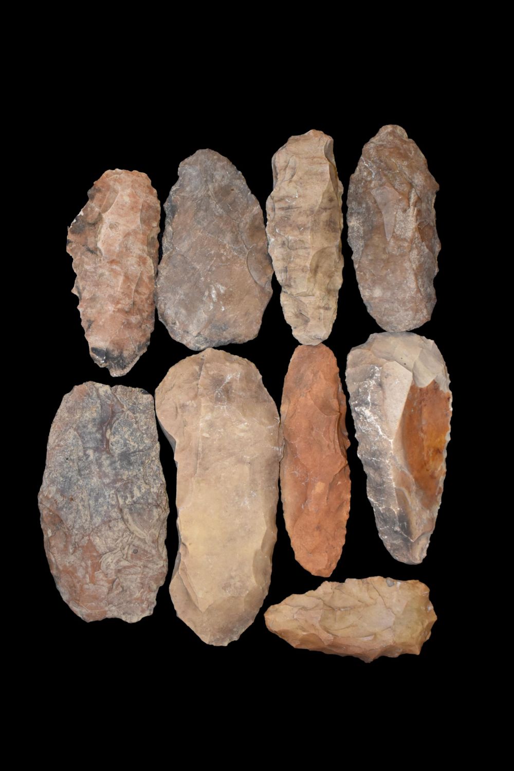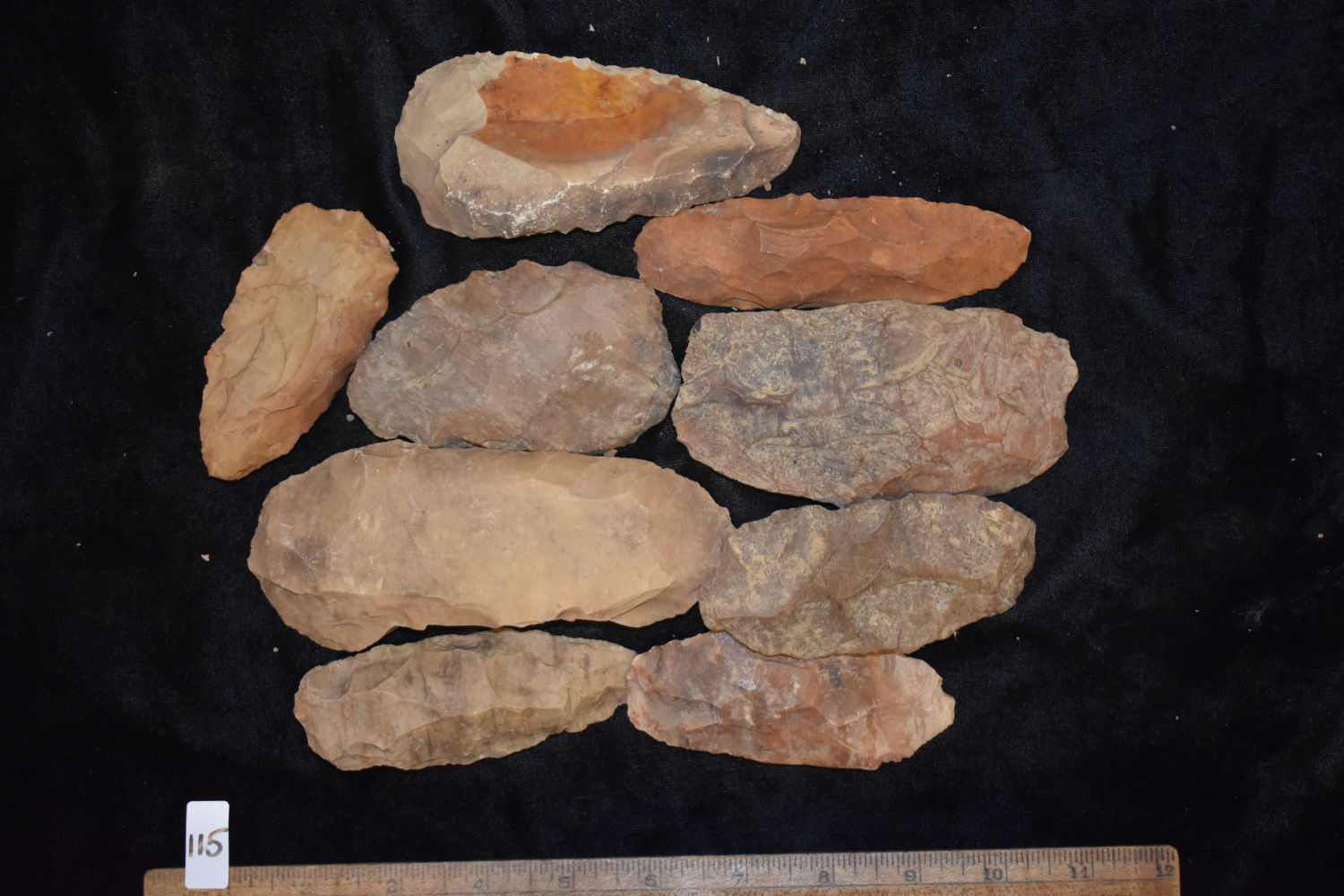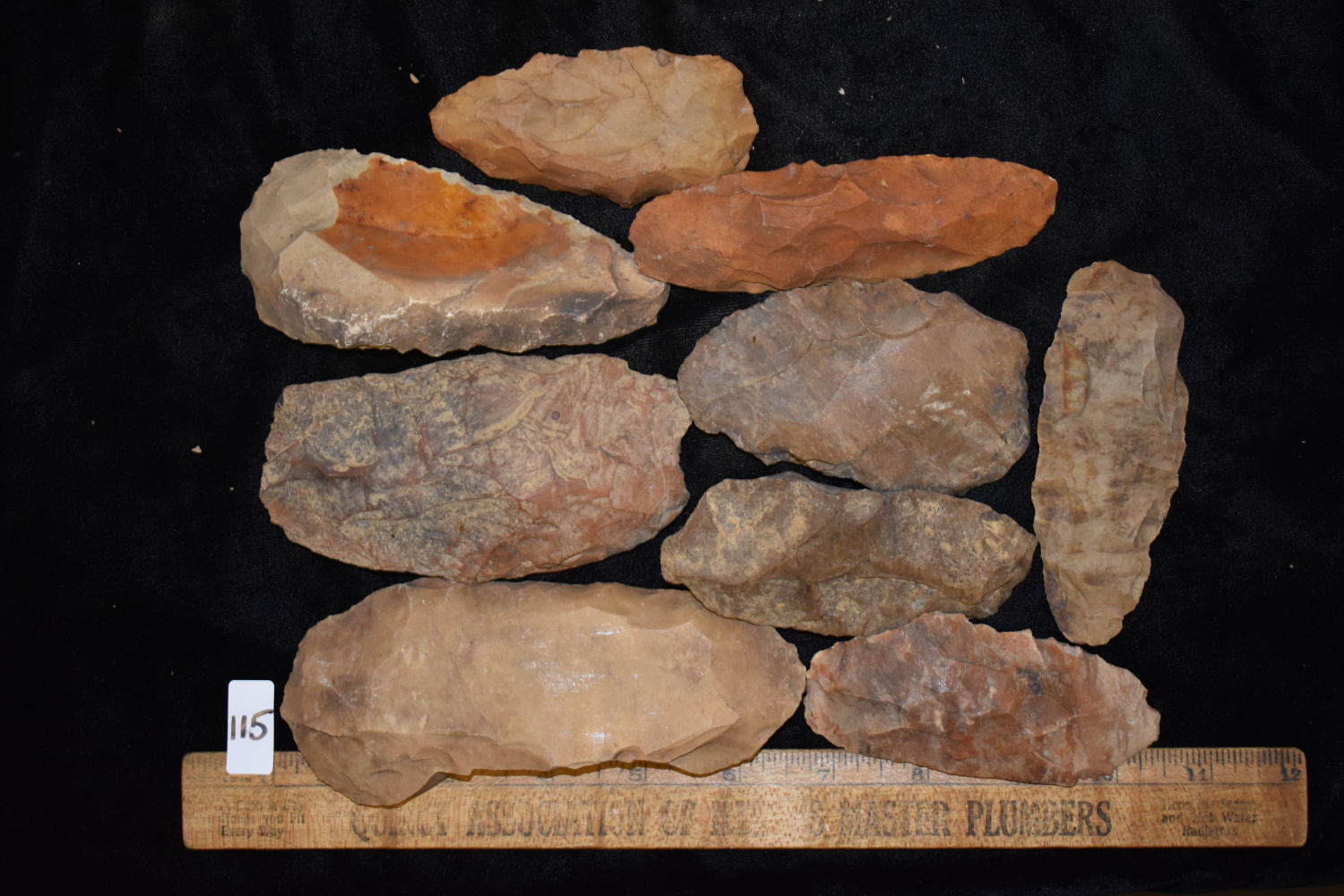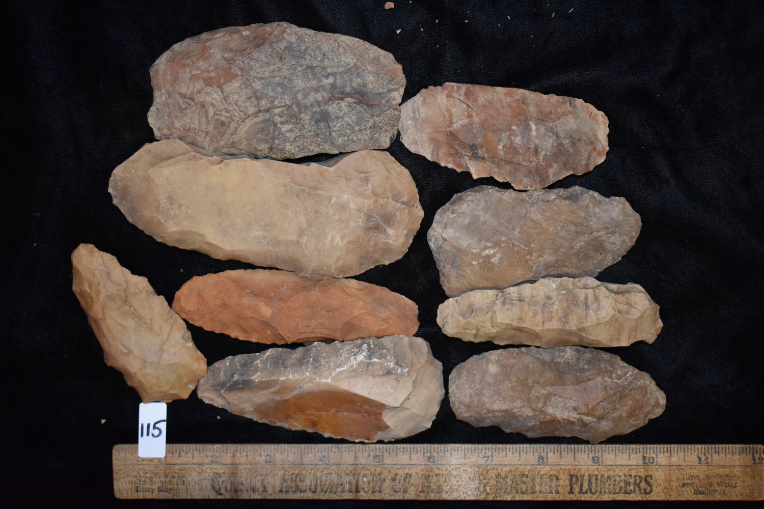 LOT OF 10 LARGE FLINT CELTS & BLADES FOUND BY MARVIN MCKINNEY IN WEAKLEY COUNTY TENNESSEE & GRAVES CO KENTUCKY