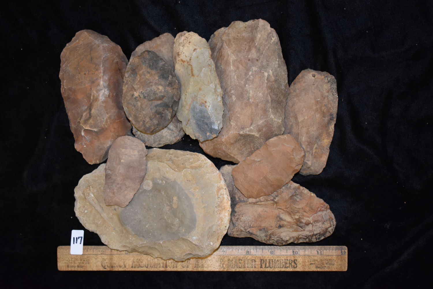 LOT OF 10 LARGE FLINT CELTS & BLADES FOUND BY MARVIN MCKINNEY IN WEAKLEY COUNTY TENNESSEE & GRAVES CO KENTUCKY