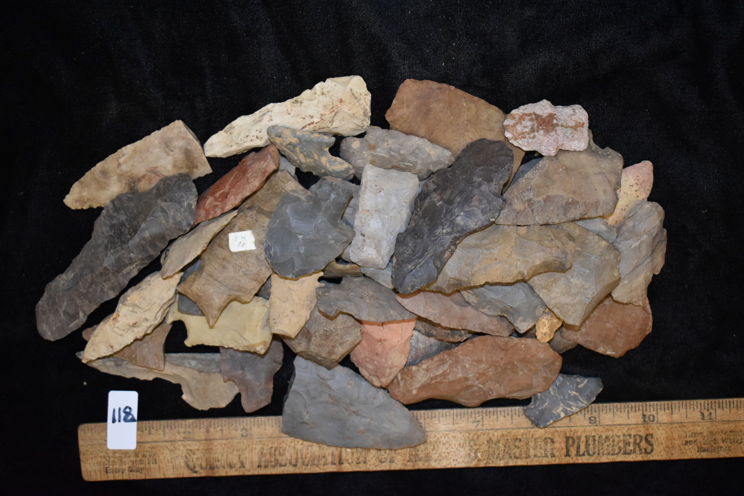 LOT OF 50 FIELD GRADE ARROWHEADS & BLADES FOUND BY MARVIN MCKINNEY IN WEAKLEY COUNTY TENNESSEE & GRAVES CO KENTUCKY