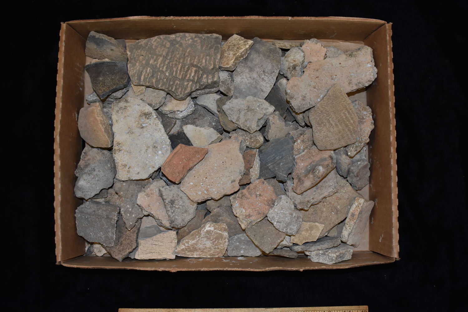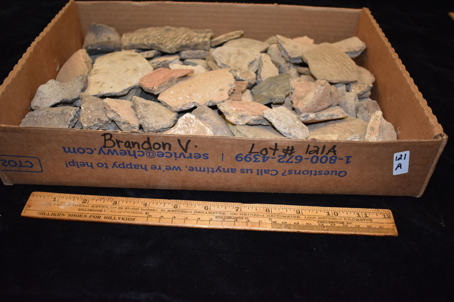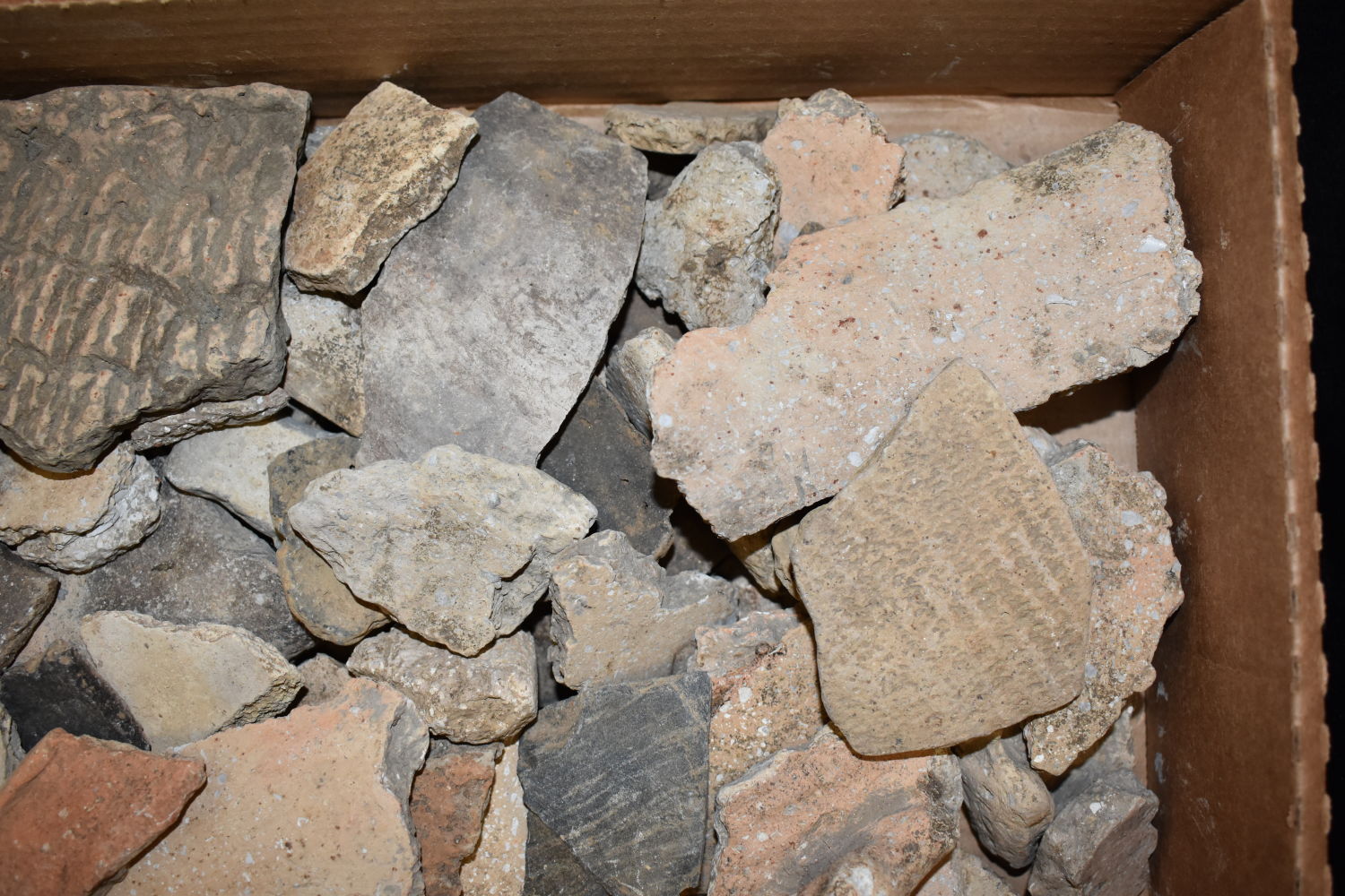 FLAT OF OVER 100 POTTERY SHARDS FOUND BY MARVIN MCKINNEY IN WEAKLEY COUNTY TENNESSEE & GRAVES CO KENTUCKY 1″ TO 6″ LONG
