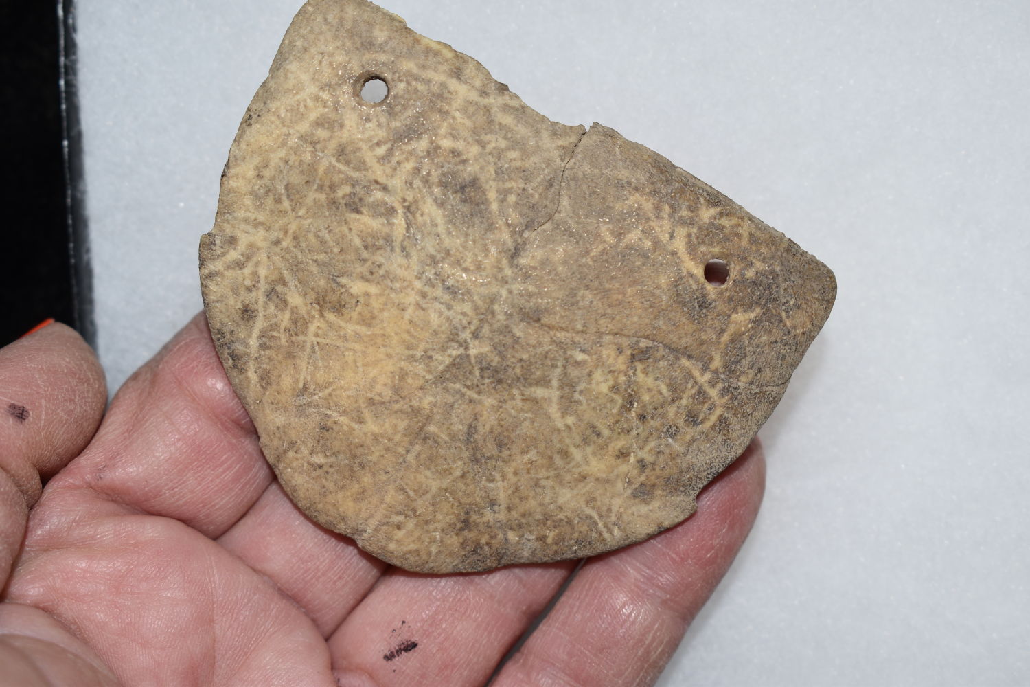 RARE BONE GORGET FOUND FOUND BY MARVIN MCKINNEY IN GRAVES COUNTY KENTUCKY, INDIAN ARROWHEAD
