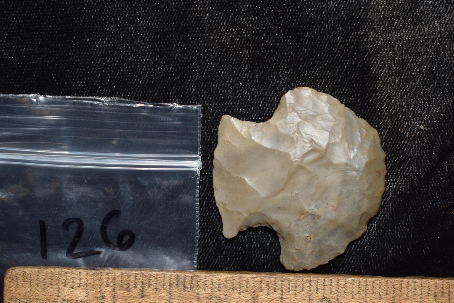 1 5/8″ HOPEWELL SNYDERS HAFTED SCRAPER FOUND IN POSEY COUNTY INDIANA BY PHILLIP MARKET, INDIAN ARROWHEAD