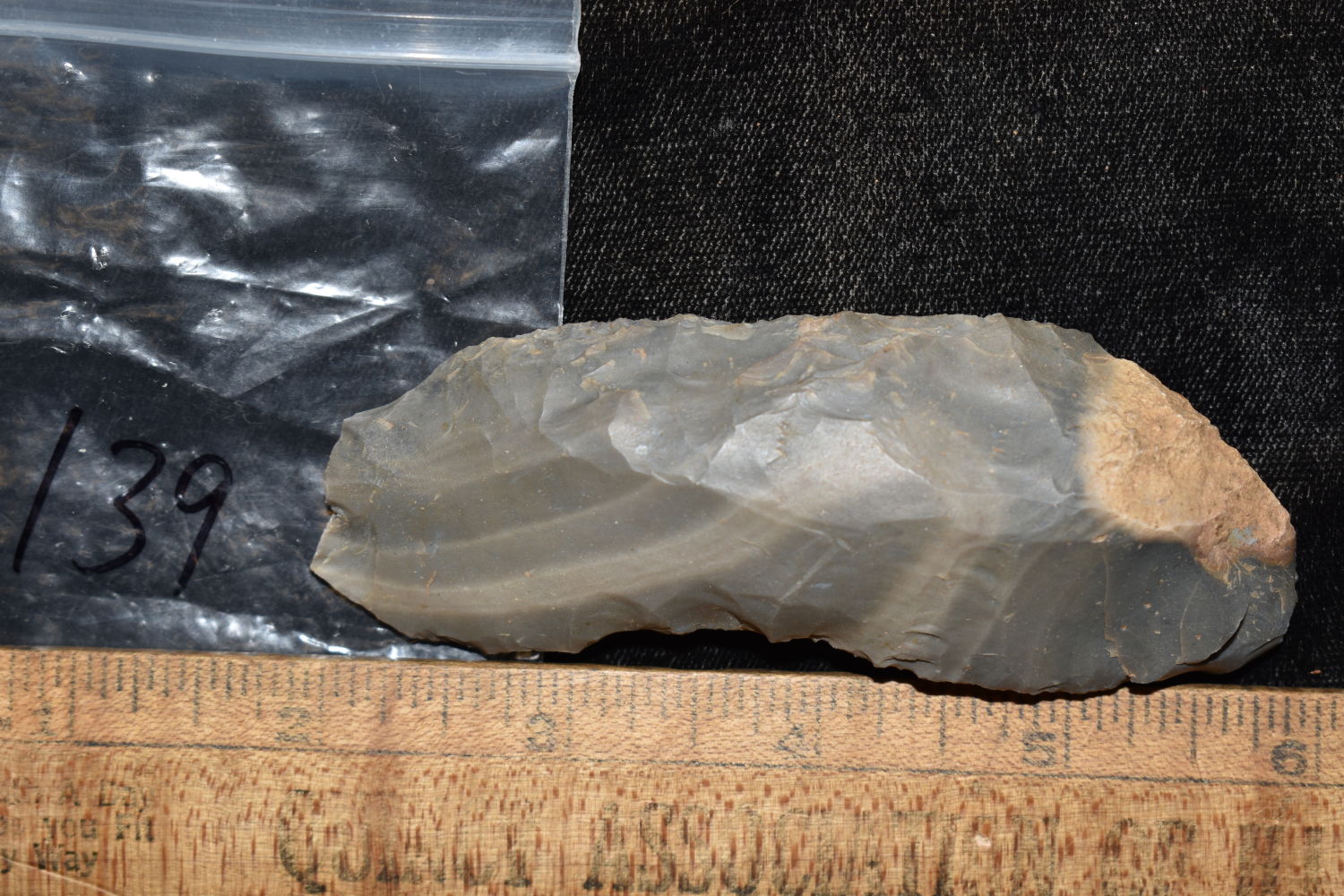 4″ COLORFUL PALEO UNIFACE BLADE FOUND IN POSEY COUNTY INDIANA BY PHILLIP MARKET, INDIAN ARROWHEAD