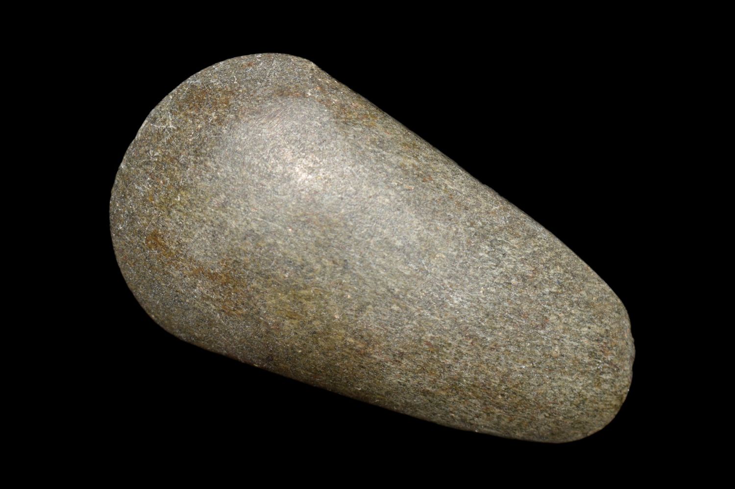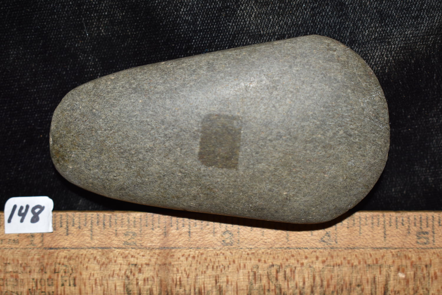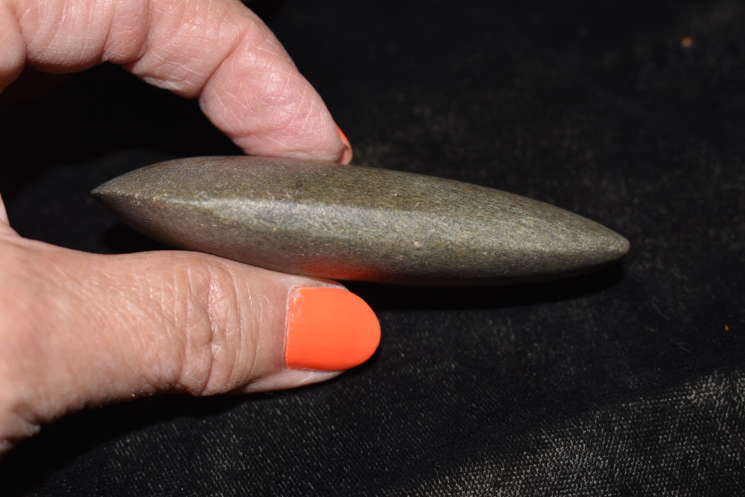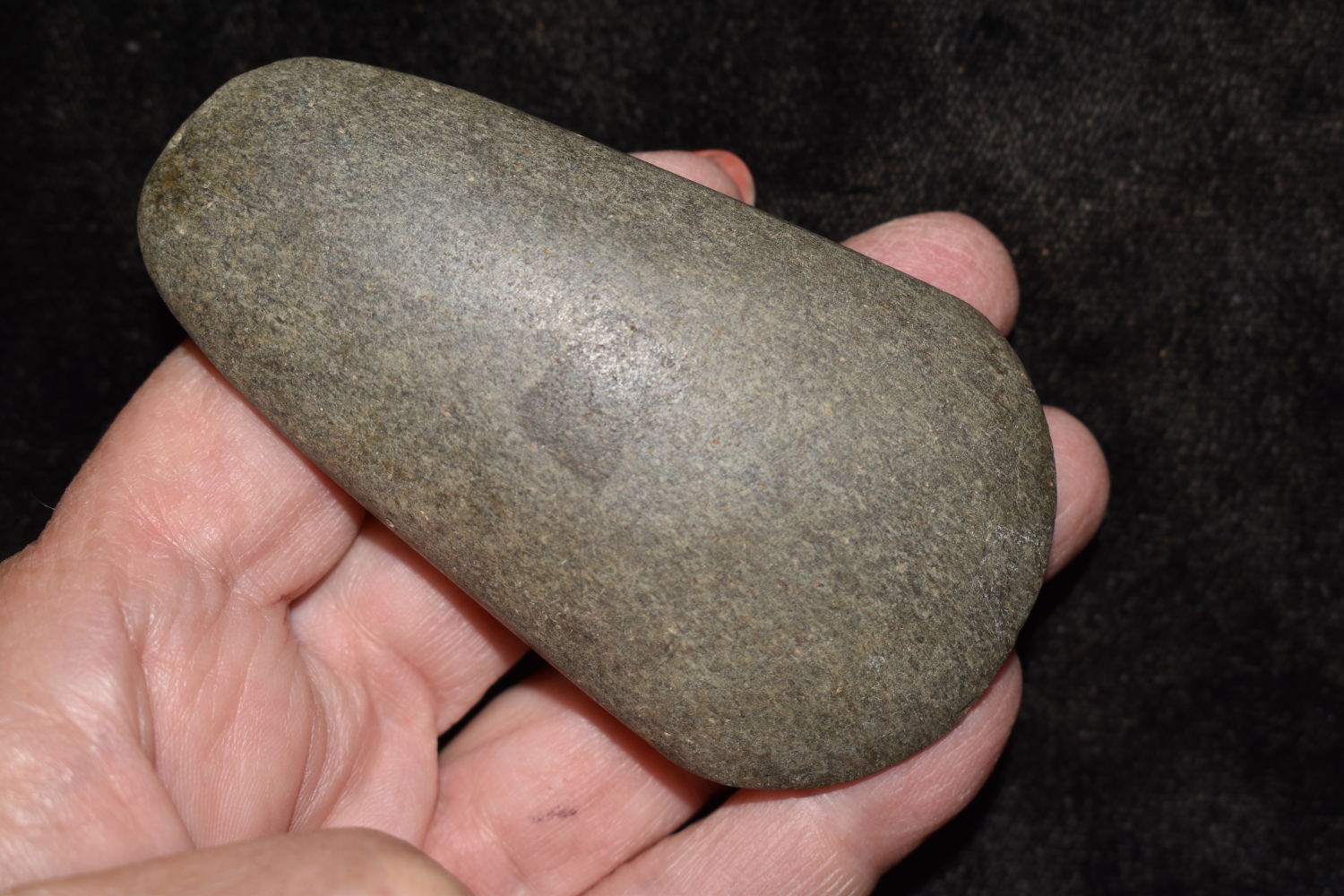 AMAZING 3 3/8″ POLISHED STONE CELT, PERFECT WITH NO DAMAGE, FOUND IN POSEY COUNTY INDIANA BY PHILLIP MARKET, INDIAN ARROWHEAD
