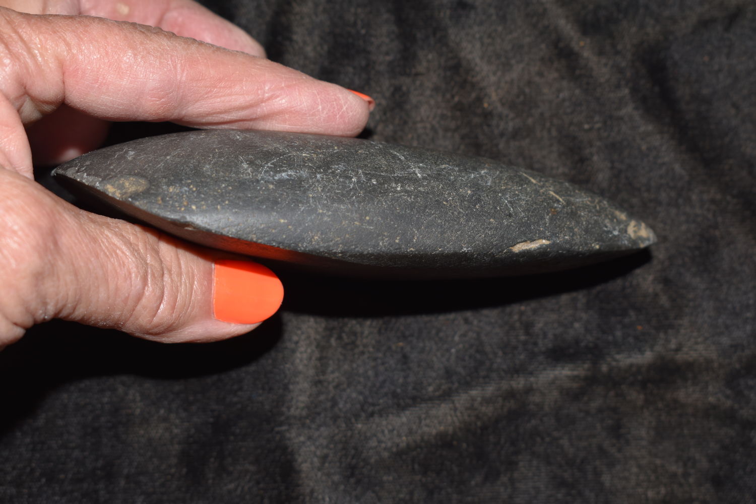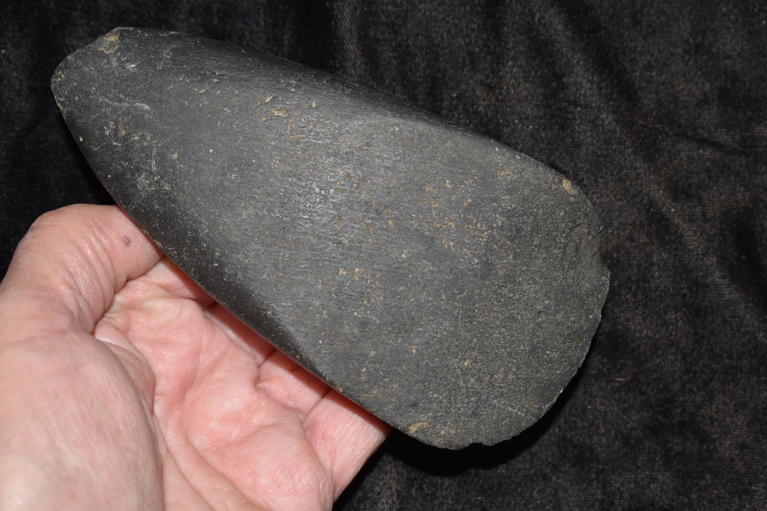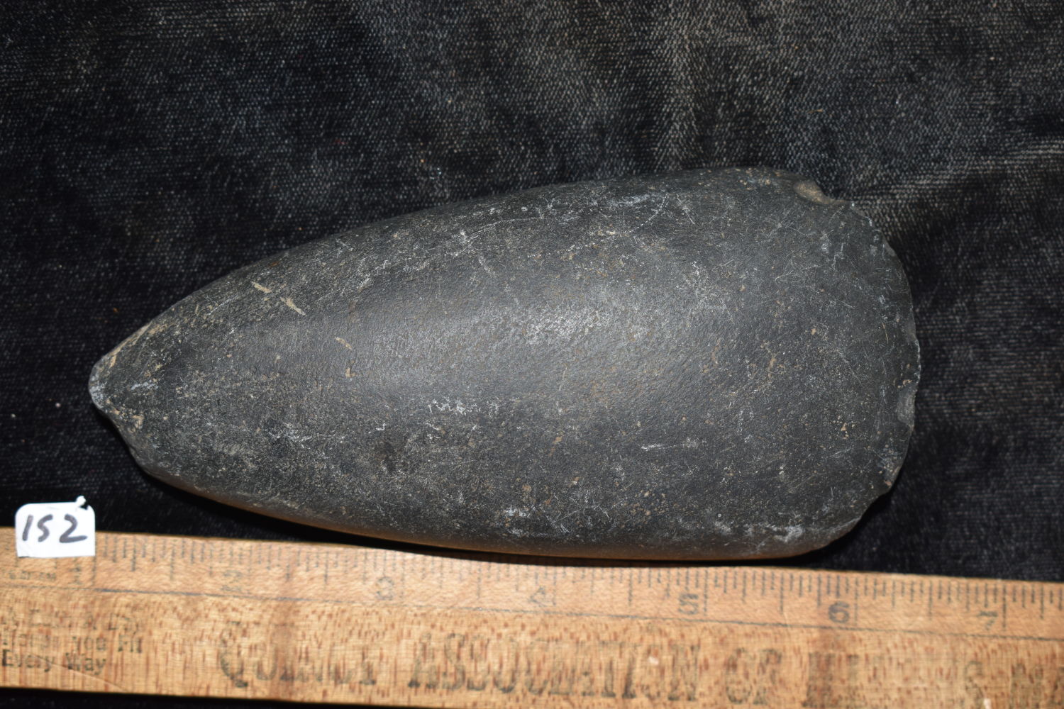 NICE 5 1/4" HARDSTONE ADZE FOUND IN POSEY COUNTY INDIANA BY PHILLIP MARKET, INDIAN ARROWHEAD