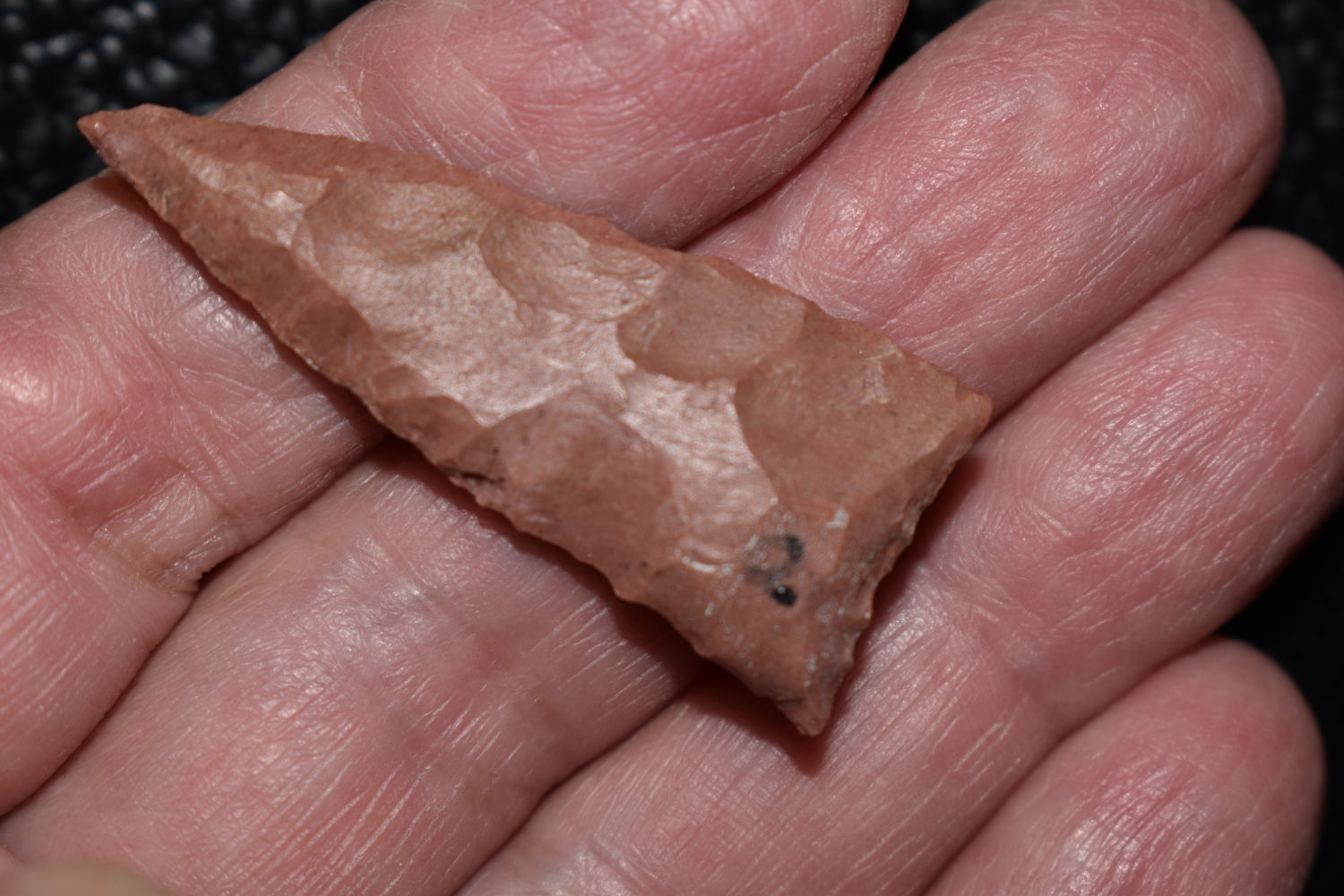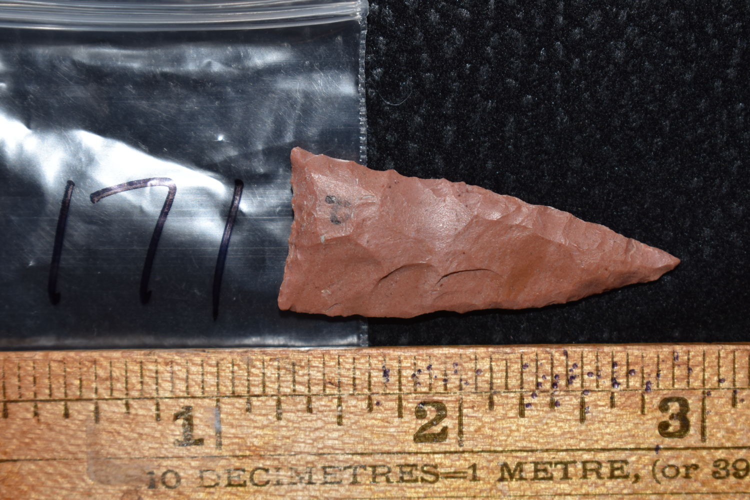 COLORFUL 1 5/8″ LONG MADISON TRIANGLE FOUND IN POSEY COUNTY INDIANA BY PHILLIP MARKET, INDIAN ARROWHEAD