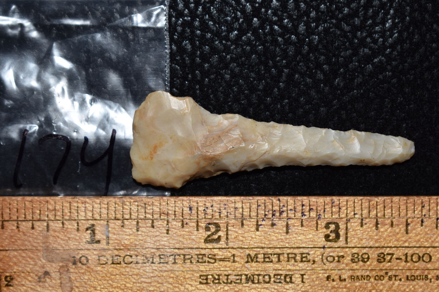 2 3/8″ HOLLAND FLINT DRILL FOUND IN POSEY COUNTY INDIANA BY PHILLIP MARKET, INDIAN ARROWHEAD