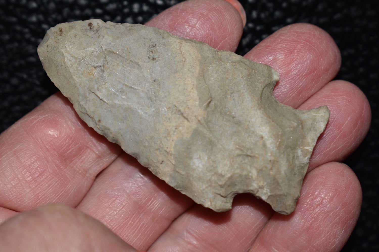 2 3/8″ INDIANA GREEN HARDIN FOUND IN POSEY COUNTY INDIANA BY PHILLIP MARKET, INDIAN ARROWHEAD