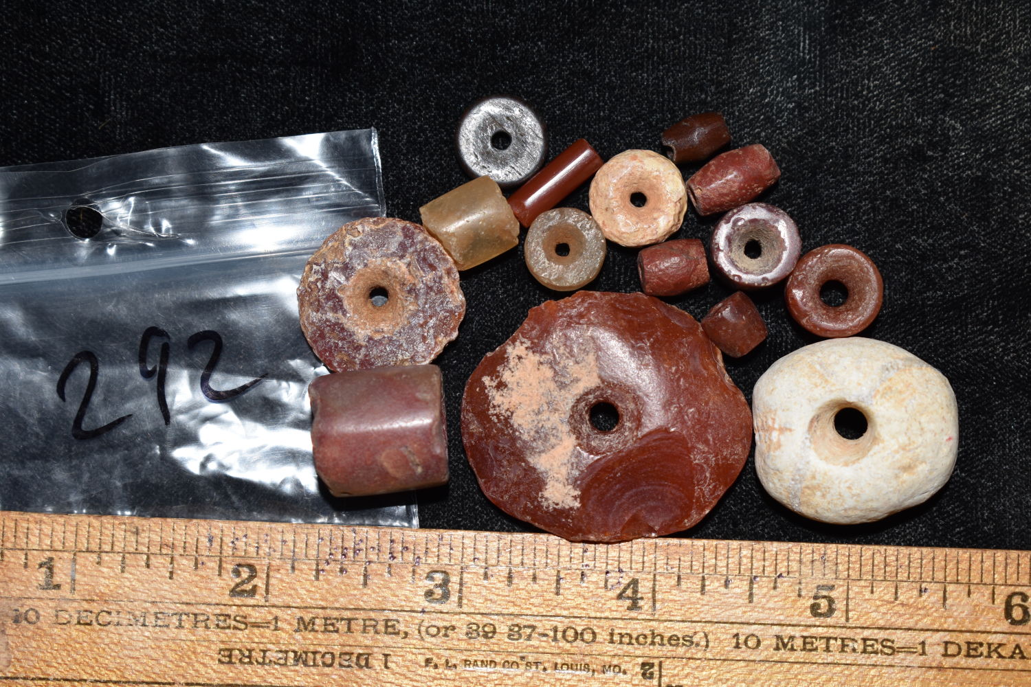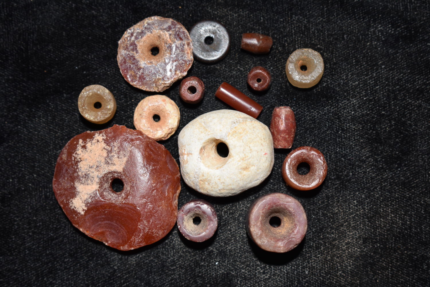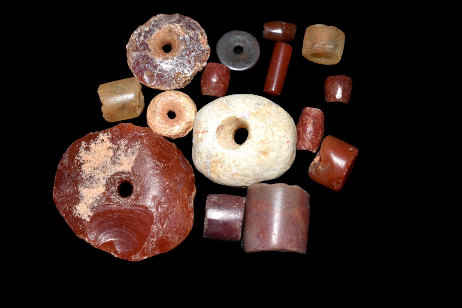 LOT OF 15 COLORFUL AGATE, QUARTZ, AND STONE BEADS FROM THE AFRICAN NEOLITHIC ERA, SAHARA DESERT
