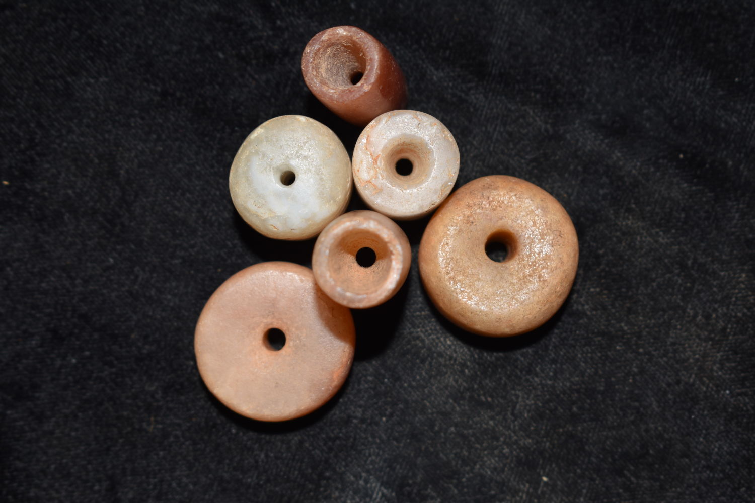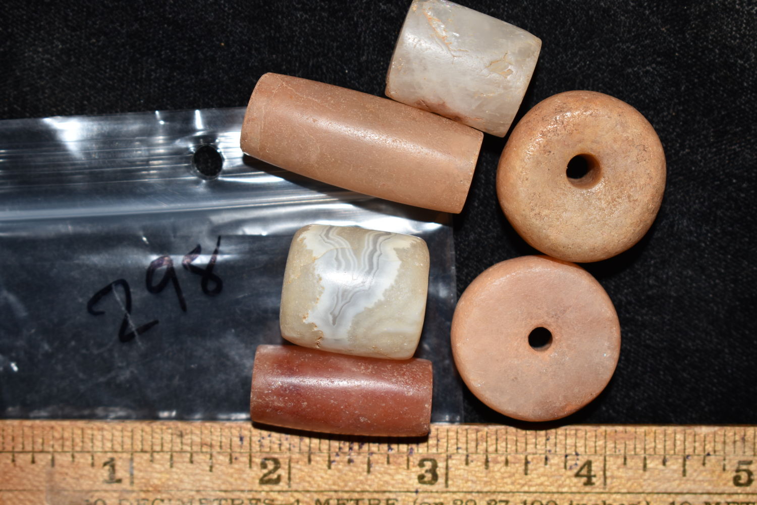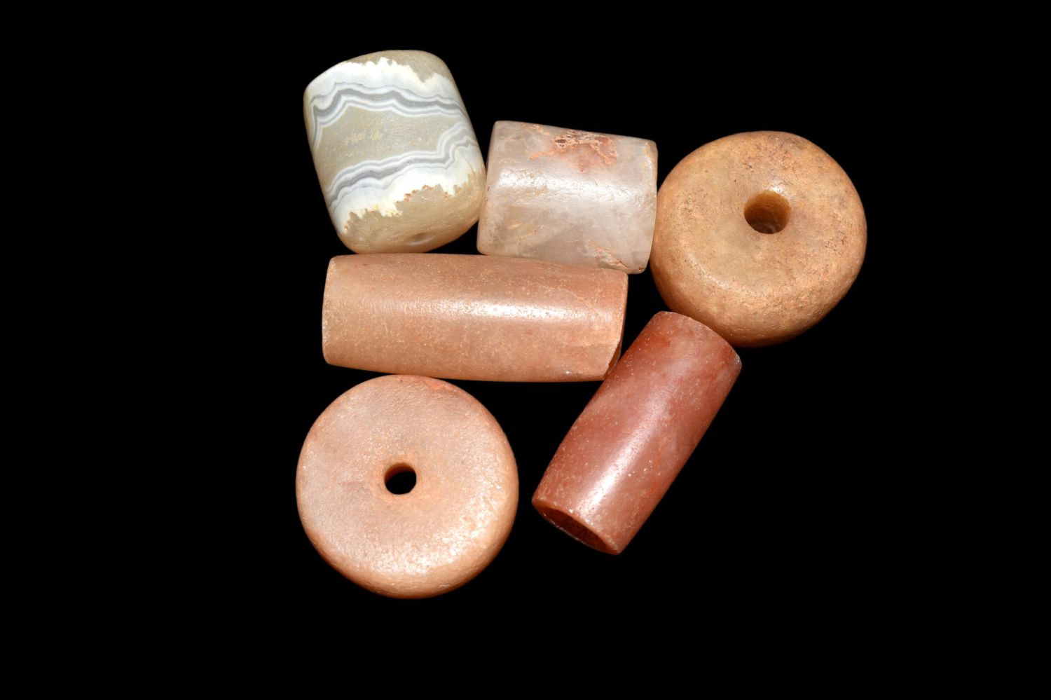 AMAZING LOT OF 6 LARGE COLORFUL AGATE AND QUARTZ BEADS FROM THE AFRICAN NEOLITHIC ERA, SAHARA DESERT