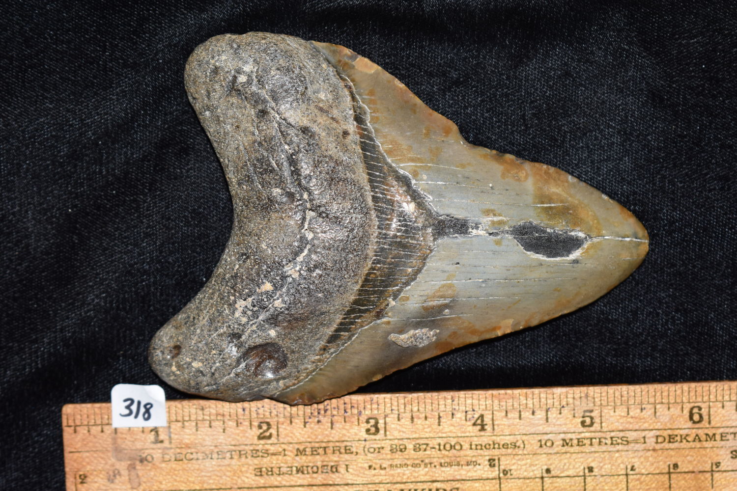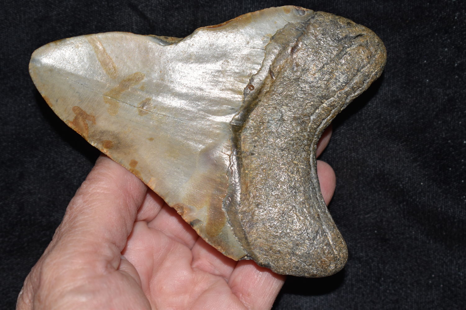 HUGE 4 3/4″ MEGALODON SHARK TOOTH FOSSIL FOUND OFF THE COAST OF THE CAROLINAS
