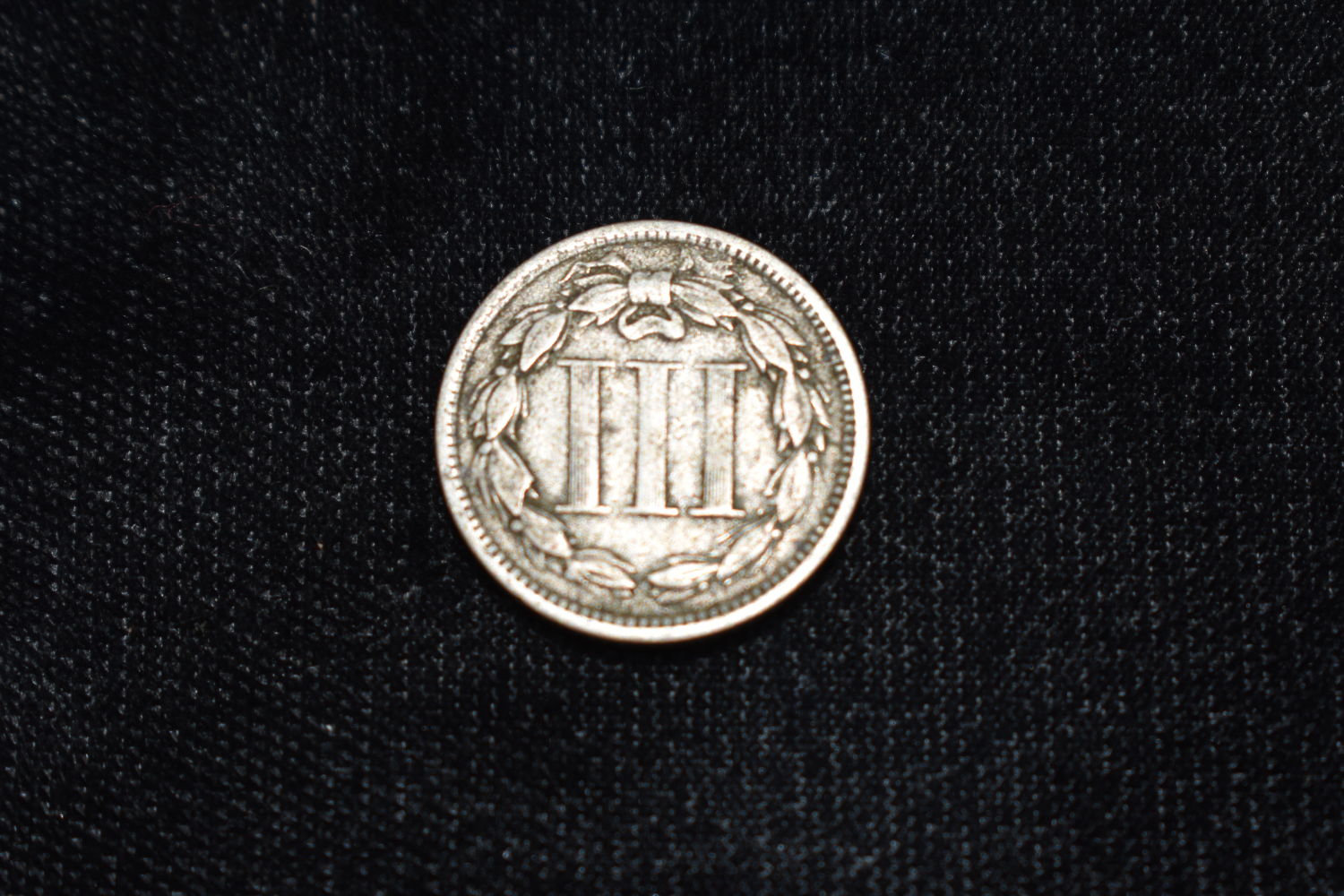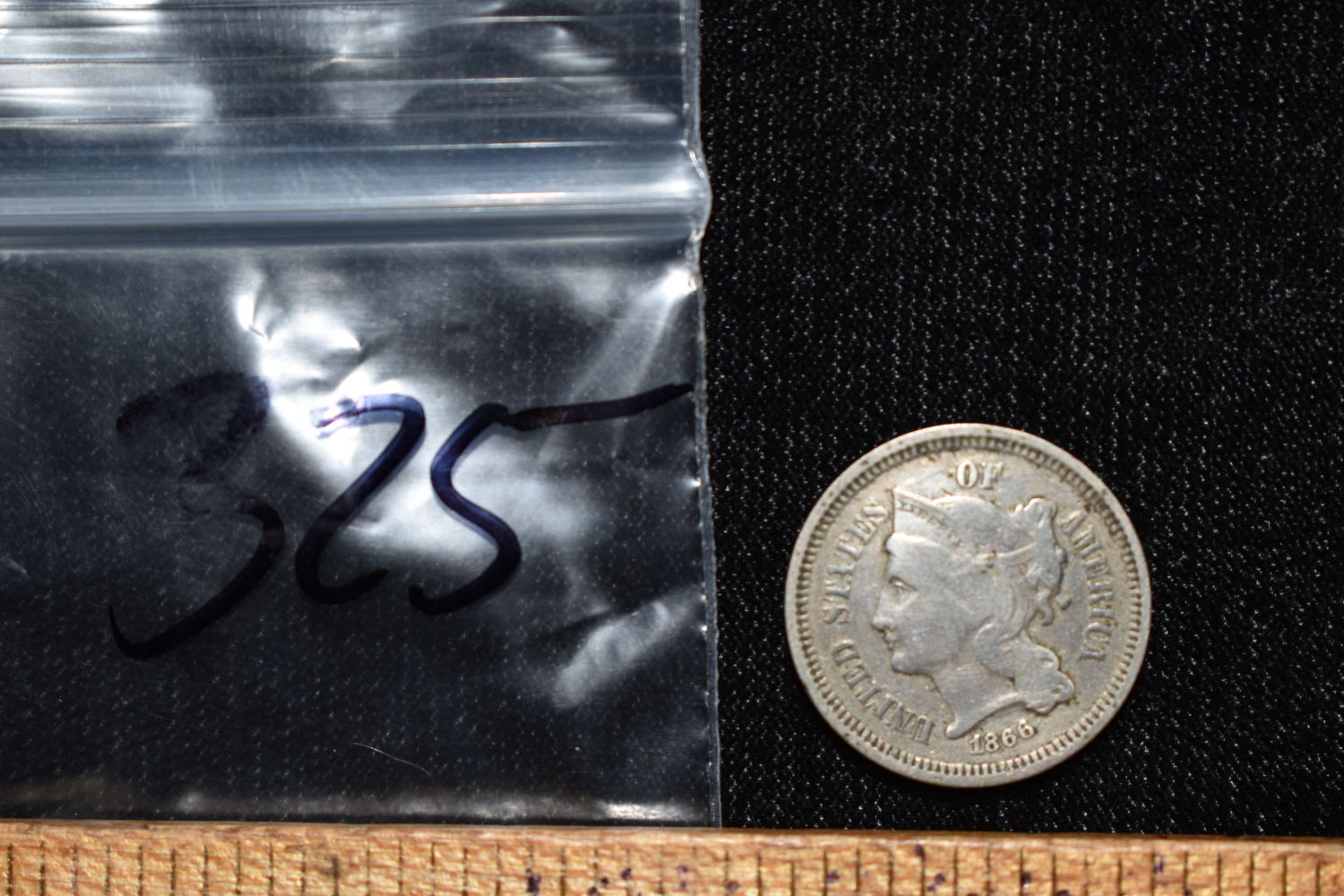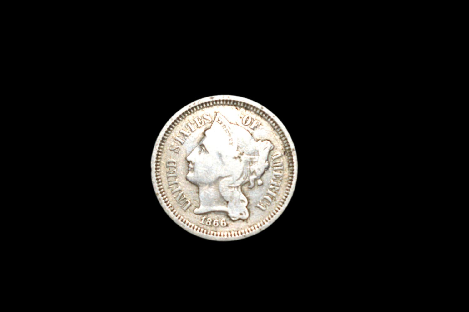 1866 THREE CENT NICKEL, NICE EARLY US COIN