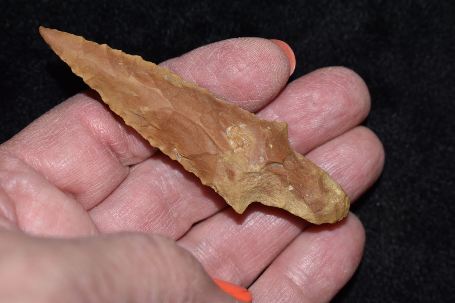 INCREDIBLE 3″ LONG WAUBESA BY MARVIN MCKINNEY IN GRAVES COUNTY KENTUCKY, INDIAN ARROWHEAD