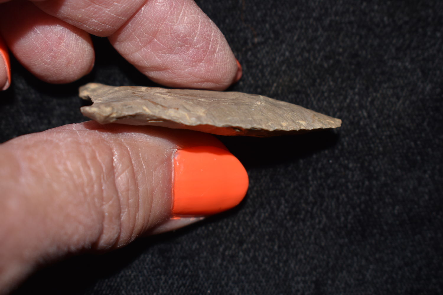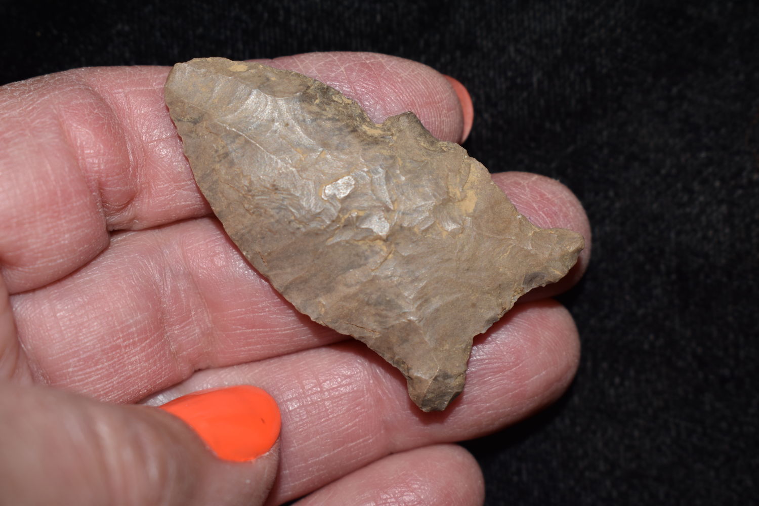 1 15/16″ GREENBRIAR FOUND BY MARVIN MCKINNEY IN WEAKLEY COUNTY TENNESSEE, INDIAN ARROWHEAD