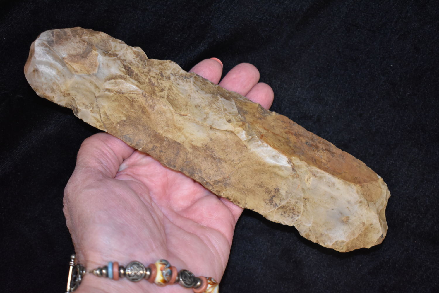 HUGE 8 1/2″ LONG FLINT CELT / SPADE FOUND BY MARVIN MCKINNEY IN WEAKLEY COUNTY TENNESSEE, INDIAN ARROWHEAD